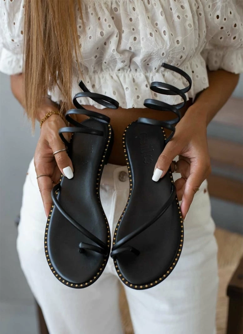 Αγορά 🎉 Προώθηση 💯 Σανδάλια δερμάτινα ESTIL με έλασμα – Μαύρο ✨ 🛒