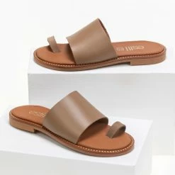Ολοκαίνουργιο 🥰 Πολύ καλή προσφορά 🎁 Σανδάλια δερμάτινα Estil με φαρδιά φάσα – Μπεζ 😉 💯