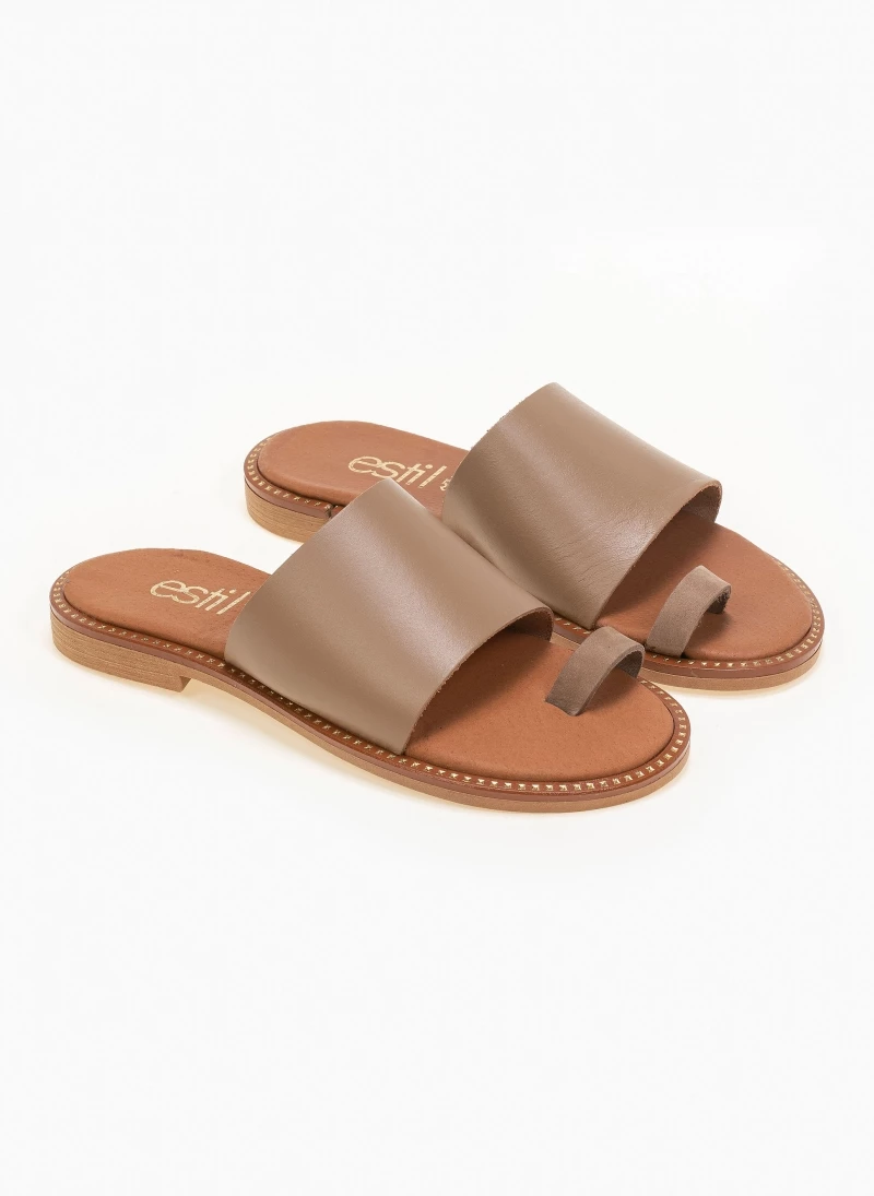 Estil δερμάτινα φλατ σανδάλια. Ο πάτος είναι δερμάτινος με ενίσχυση. Η σόλα είναι μαλακή. Ελληνικής κατασκευής.