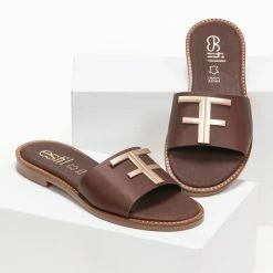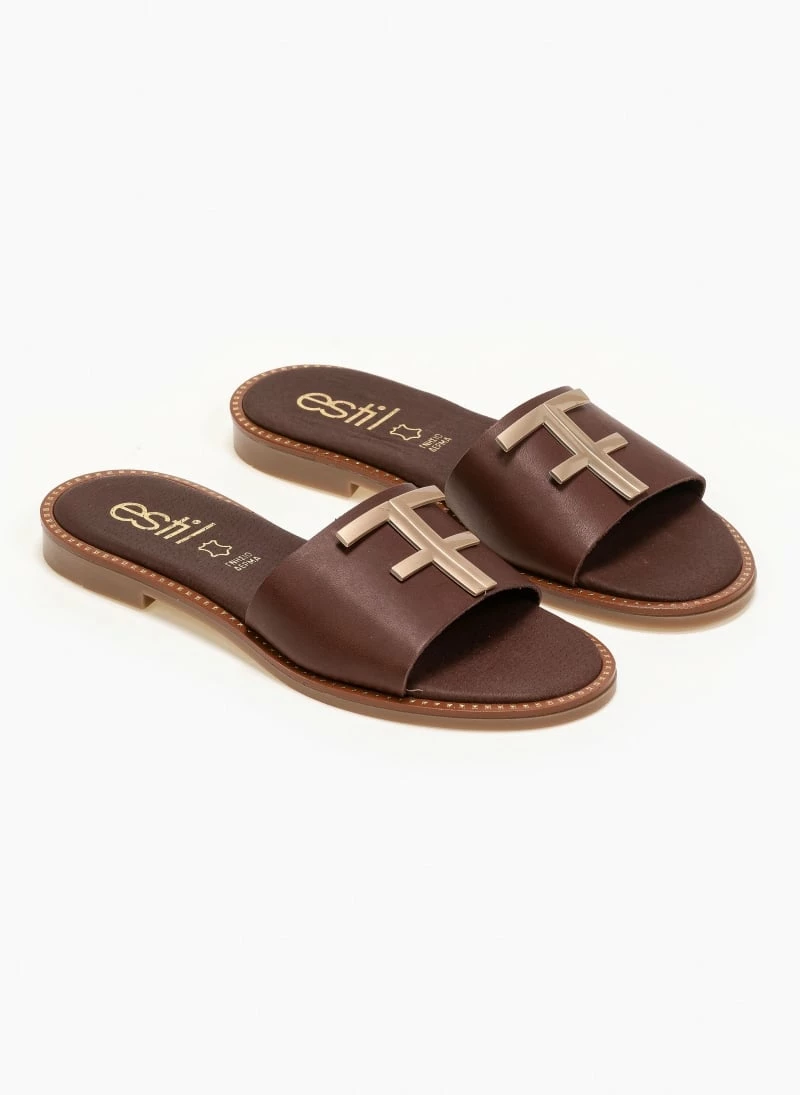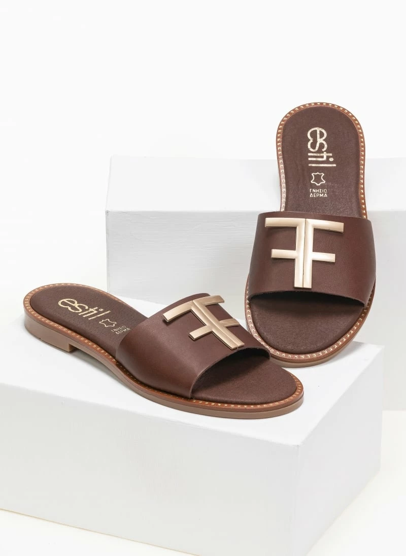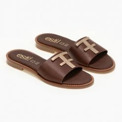 Το φθηνότερο 🎉 Νέος ✔️ Σανδάλια δερμάτινα Estil με φάσα και μεταλλικό διακοσμητικό – Καφέ 😍 💯