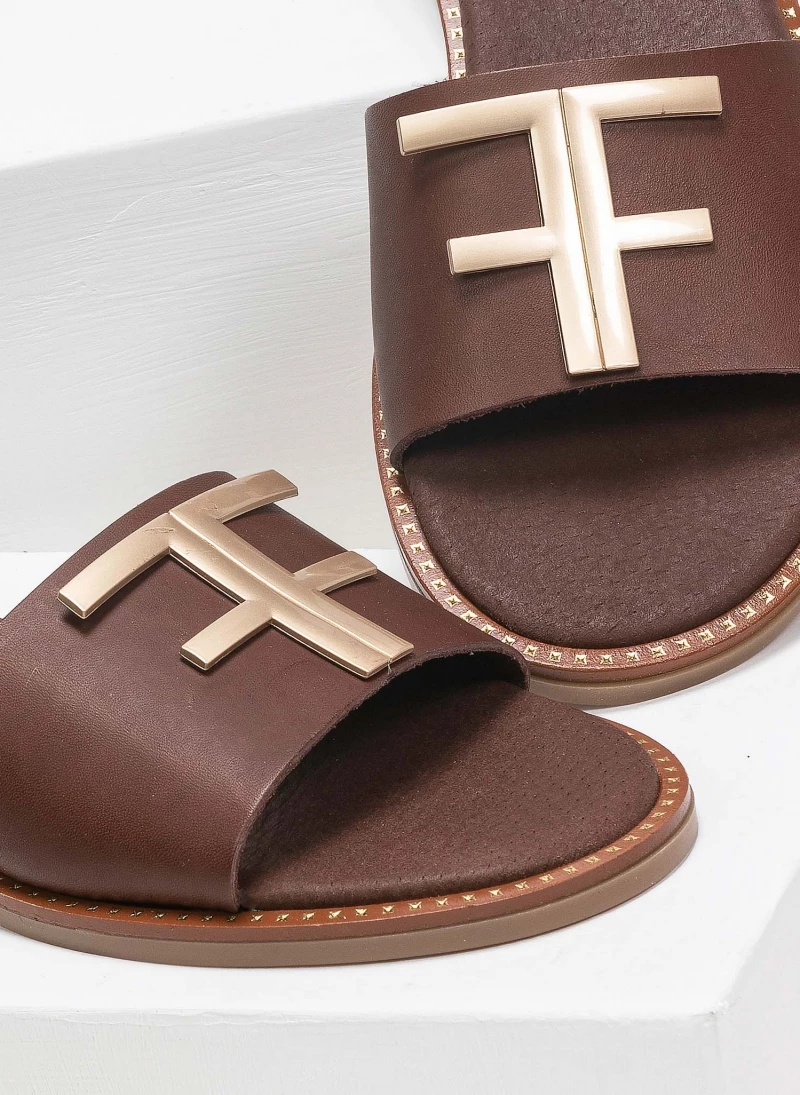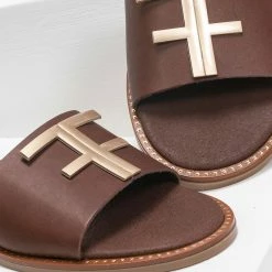 Best Pirce ✔️ Προϋπολογισμός 👍 Πέδιλα TFP Flat δερμάτινα με χιαστί δέσιμο – Χαλκός 👏 ⭐