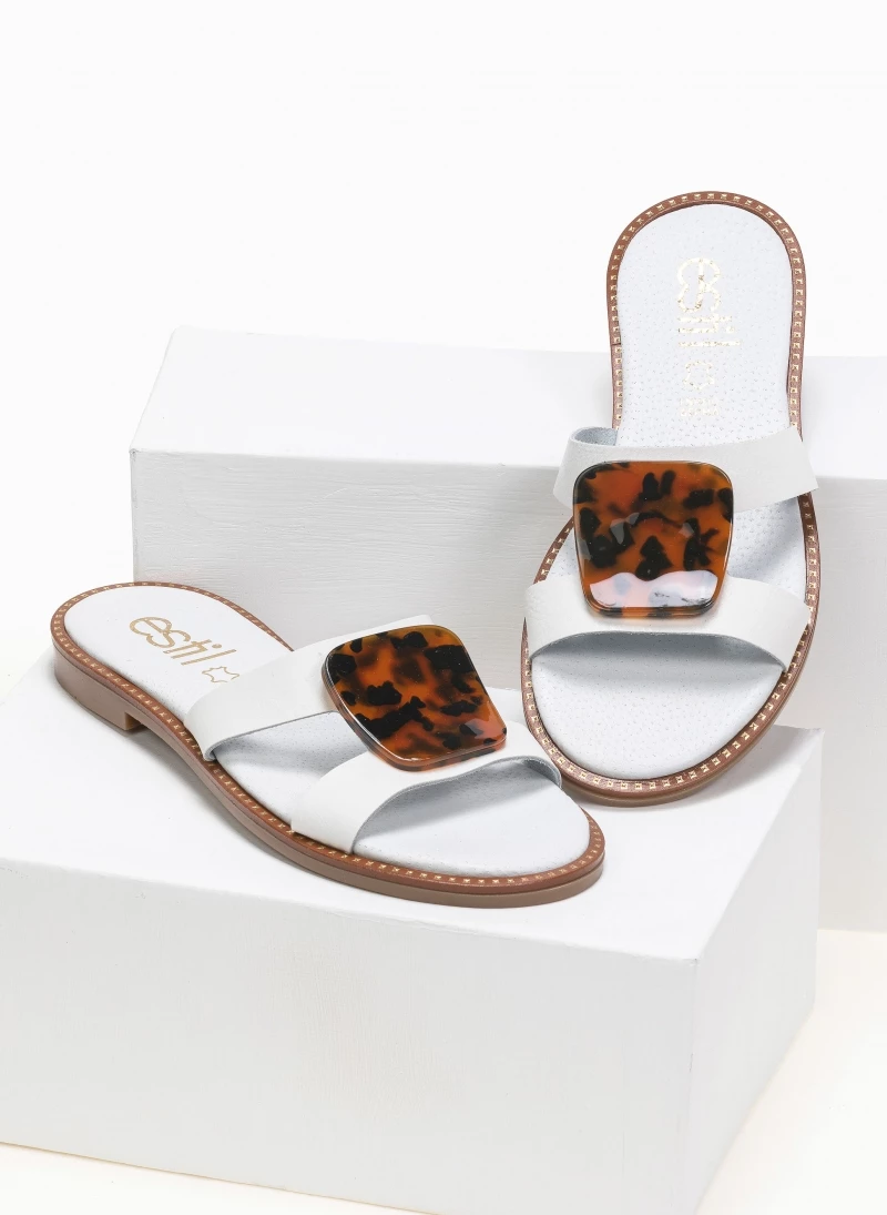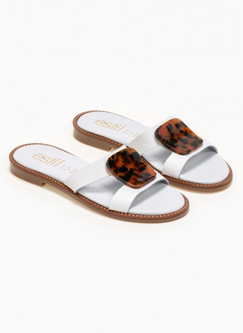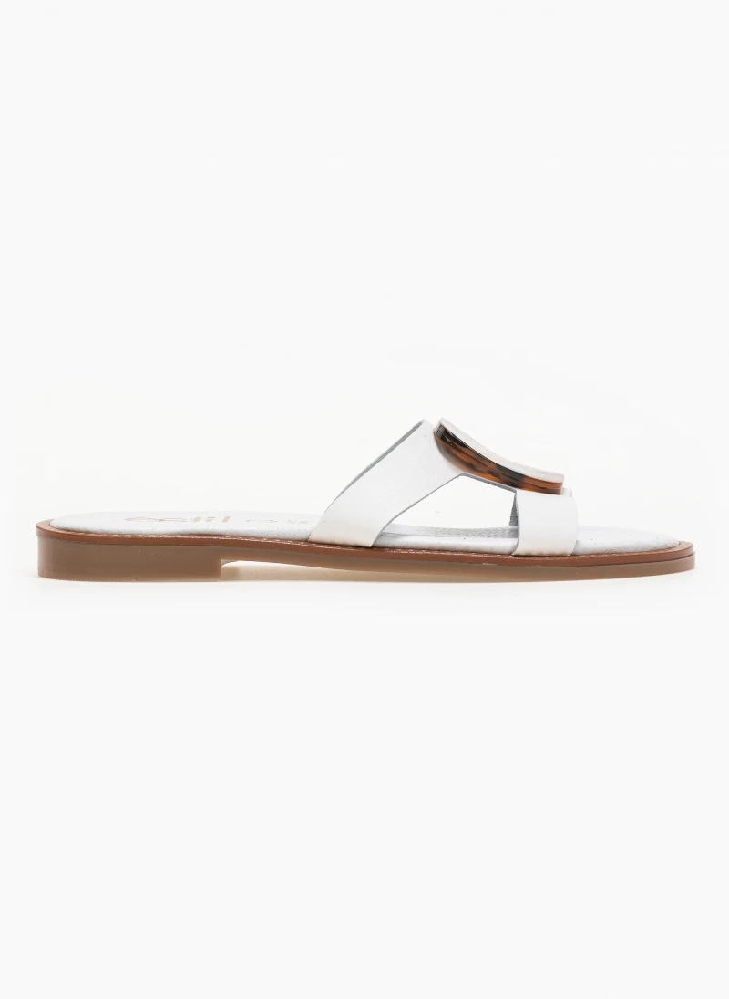 Best Pirce 🎁 Το φθηνότερο 👏 Σανδάλια δερμάτινα Estil με κοκκάλινη αγκράφα – Λευκό 🎁 🥰