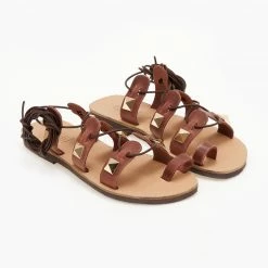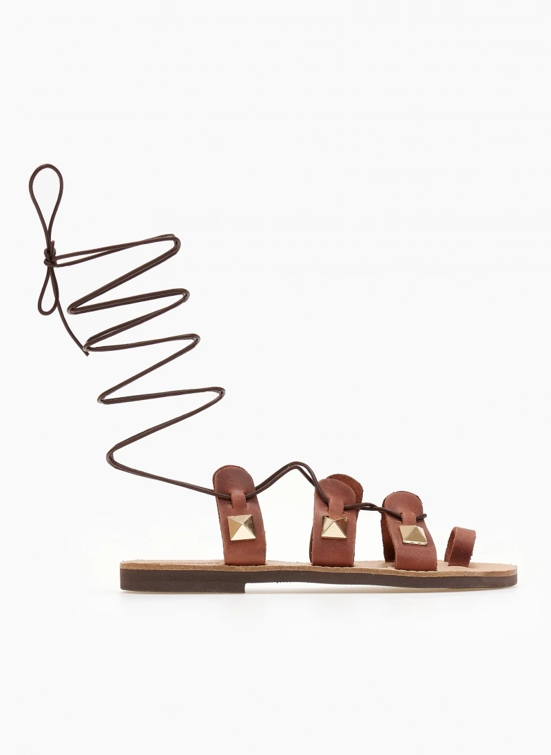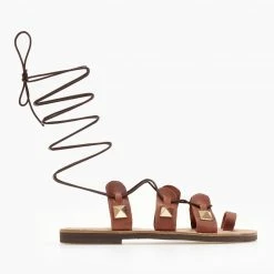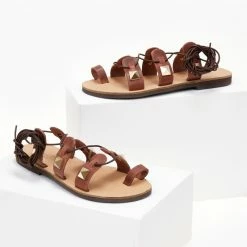 Το φθηνότερο ✔️ Νέος 🥰 Σανδάλια δερμάτινα ESTIL με Lace Up δέσιμο – Ταμπά 🔥 ✨