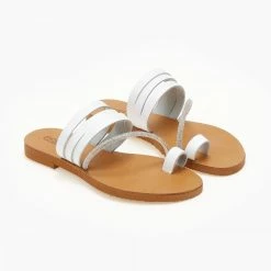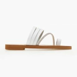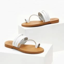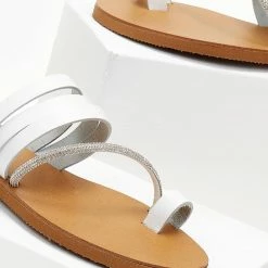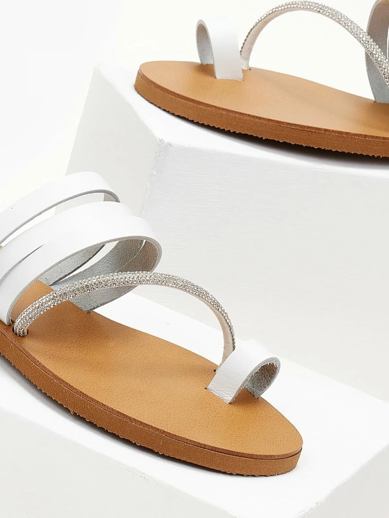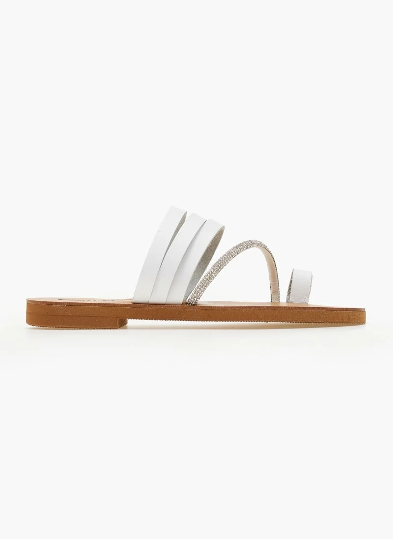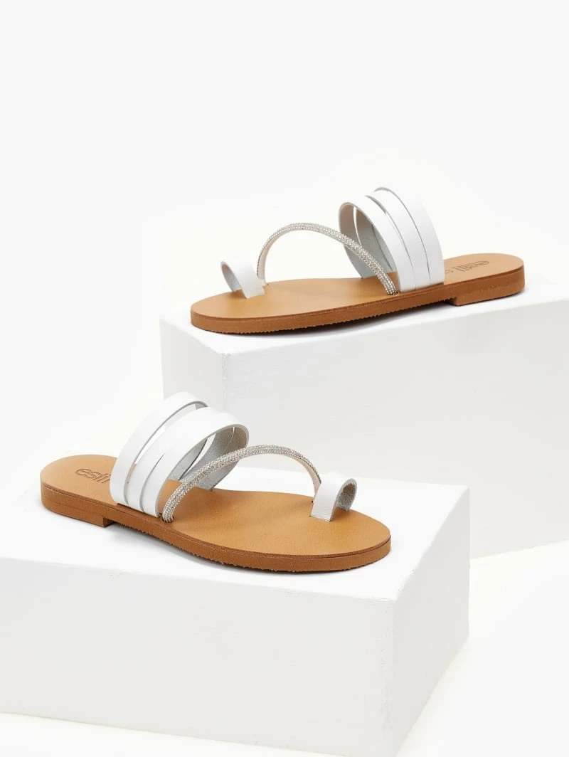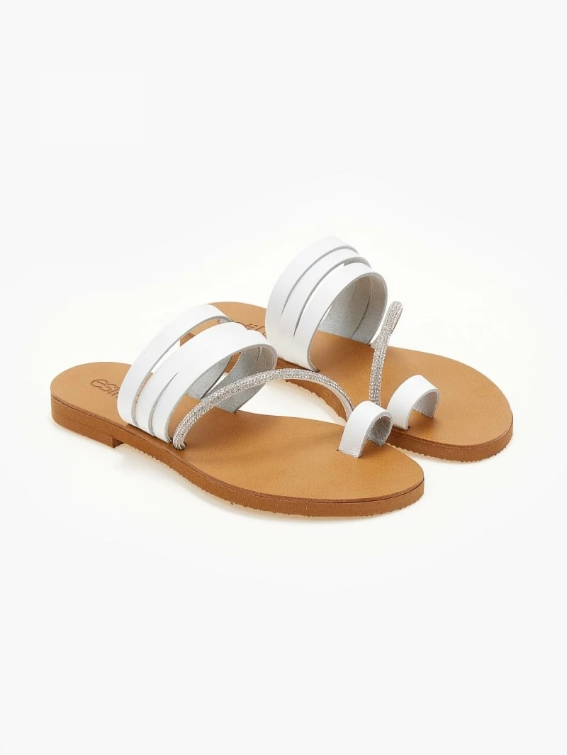 Κουπόνι ⭐ Εκπτωση 🎉 Σανδάλια δερμάτινα ESTIL με λοξό Strass λουράκι – Λευκό 😀 🤩