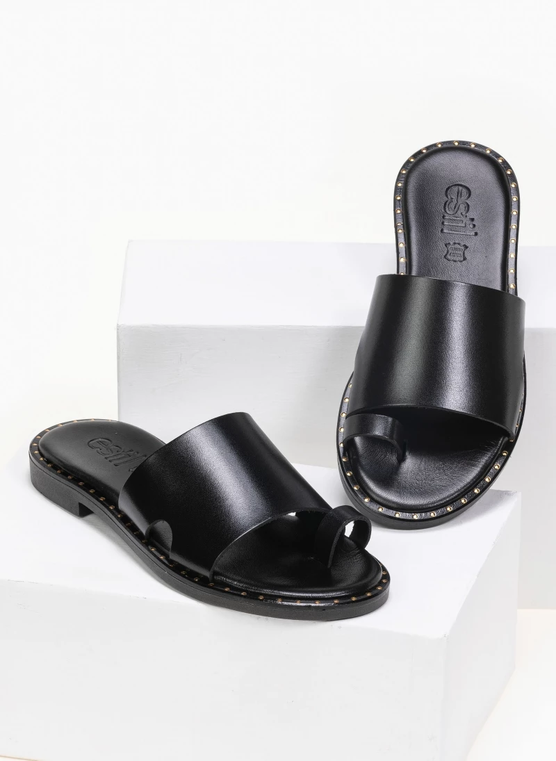 Best Pirce 🌟 Κουπόνι 💯 Σανδάλια δερμάτινα Estil με μικρά ανοίγματα – Μαύρο ❤️ 🔥