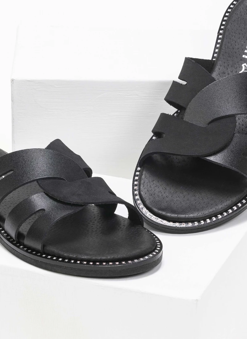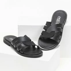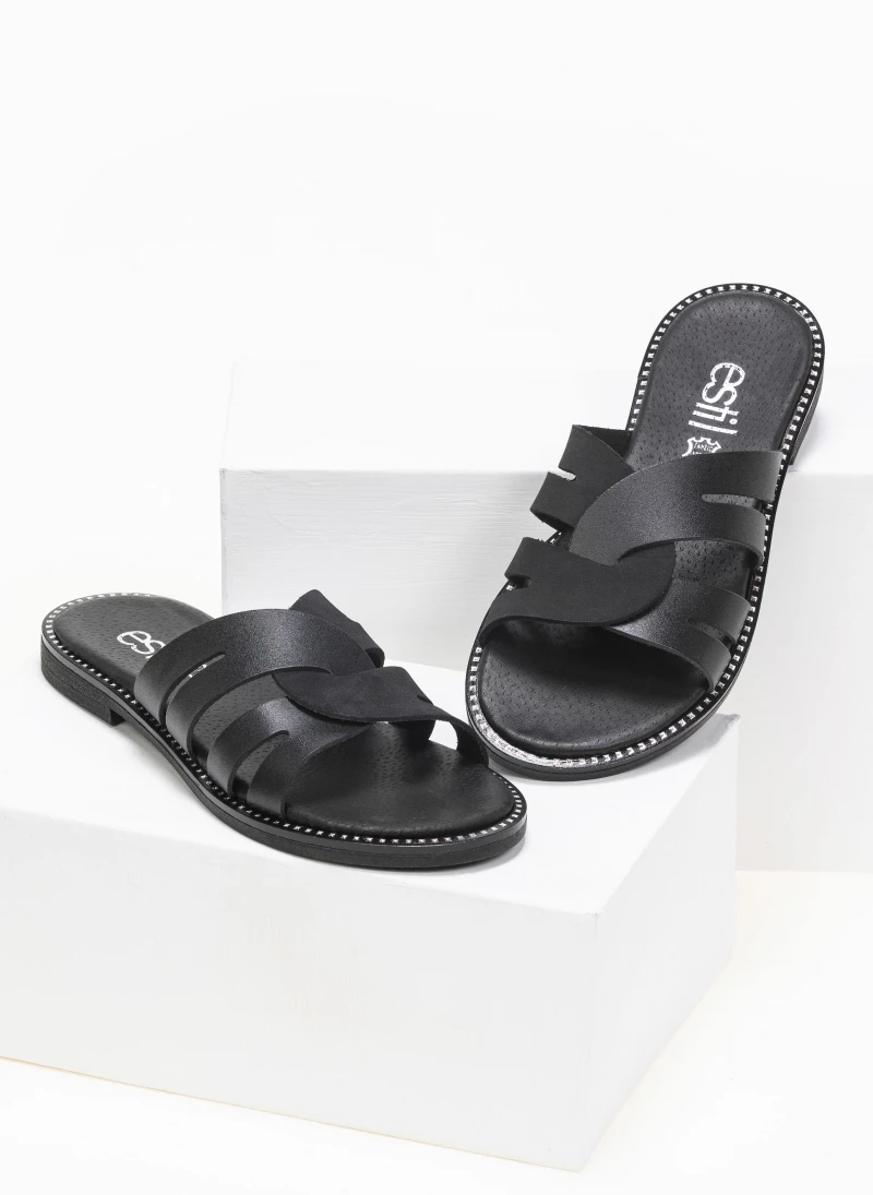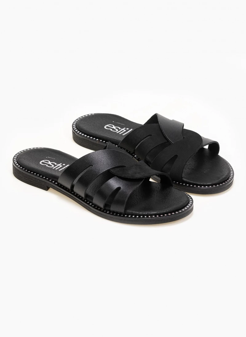 ΧΟΝΔΡΙΚΟ ΕΜΠΟΡΙΟ ⌛ Προϋπολογισμός 🔥 Σανδάλια δερμάτινα Estil με περαστές φάσες – Μαύρο 💯 ⭐
