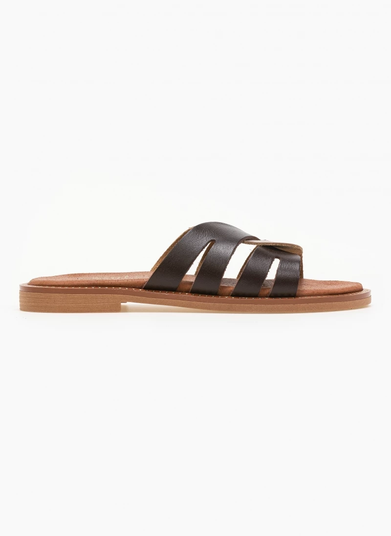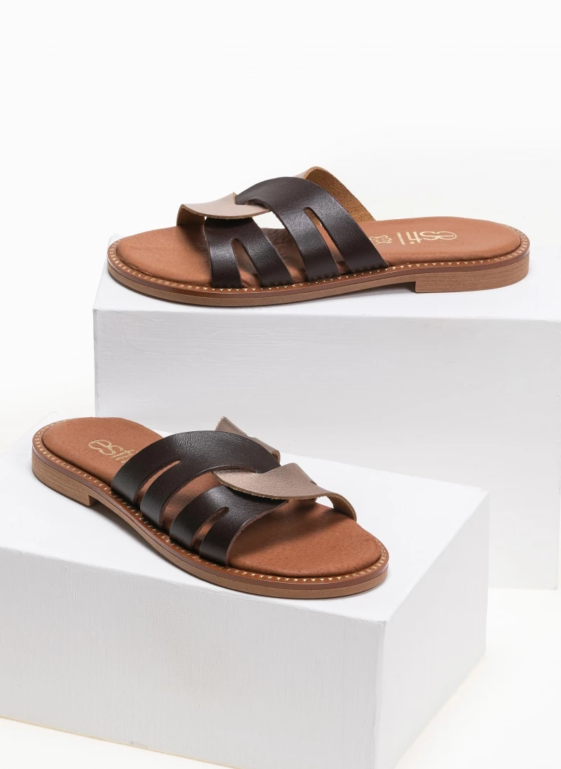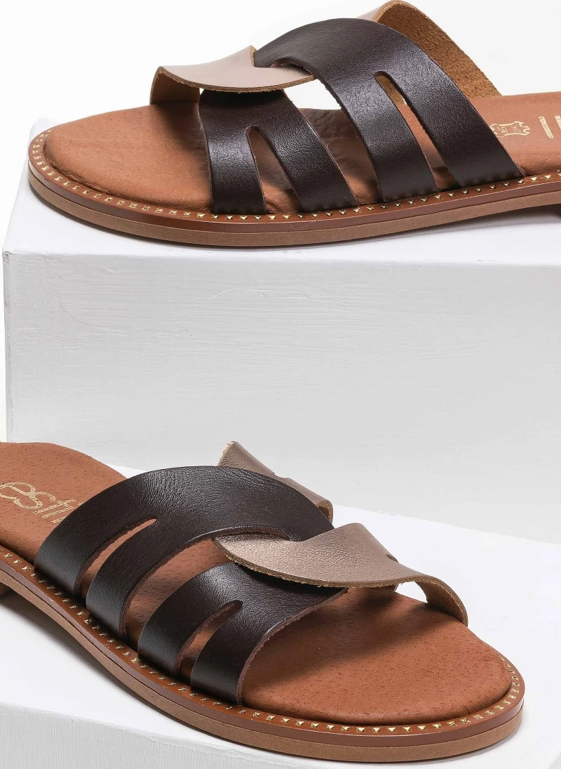 Προώθηση ✔️ Flash Sale ✨ Σανδάλια δερμάτινα Estil με περαστές φάσες – Mocha 🤩 ❤️