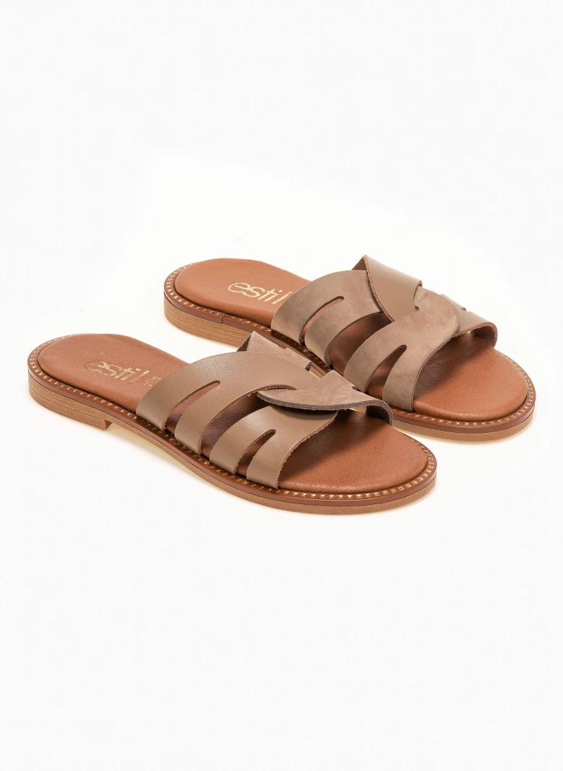 Συμφωνίες 🧨 Πολύ καλή προσφορά ✨ Σανδάλια δερμάτινα Estil με περαστές φάσες – Μπεζ ✨ 😀