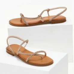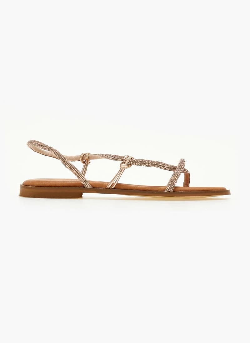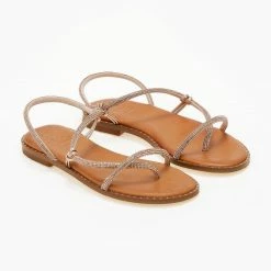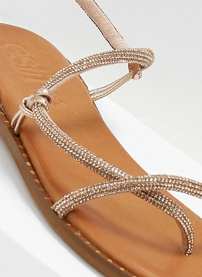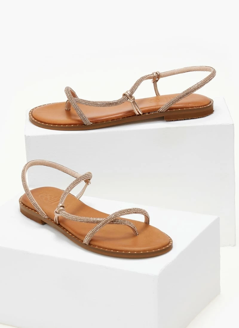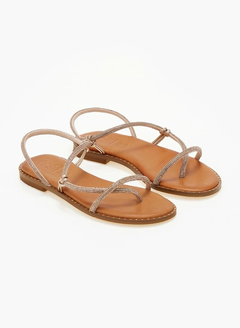 Αγορά 🎁 Flash Sale 🔥 Σανδάλια δερμάτινα ESTIL με περαστό Strass λουράκι – Χαλκός 🎁 😀