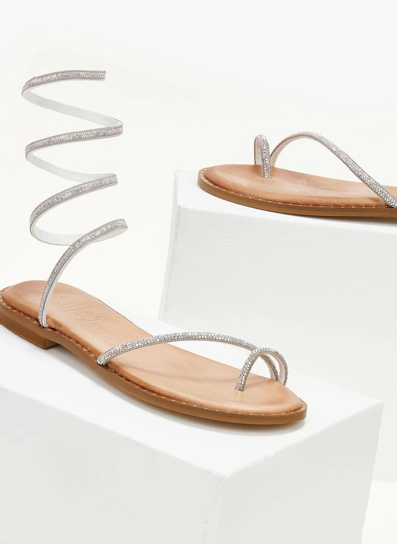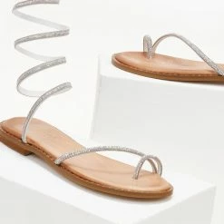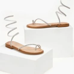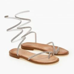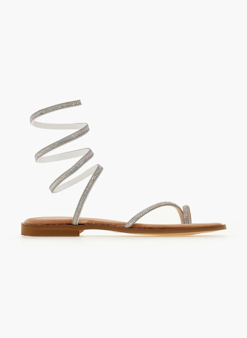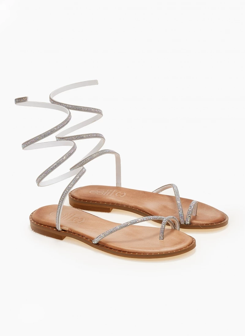 Εξοδος 👏 ΧΟΝΔΡΙΚΟ ΕΜΠΟΡΙΟ 🎁 Σανδάλια δερμάτινα ESTIL με Strass έλασμα – Ασημί 😉 ✔️