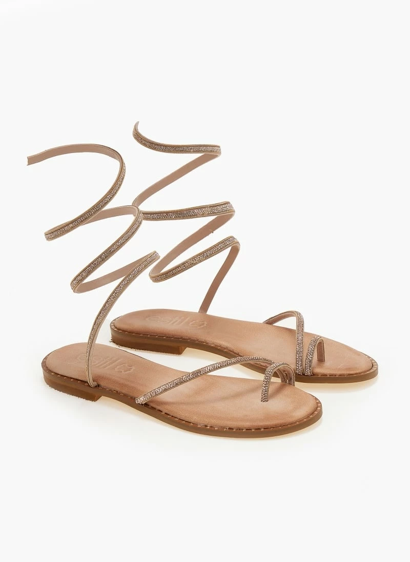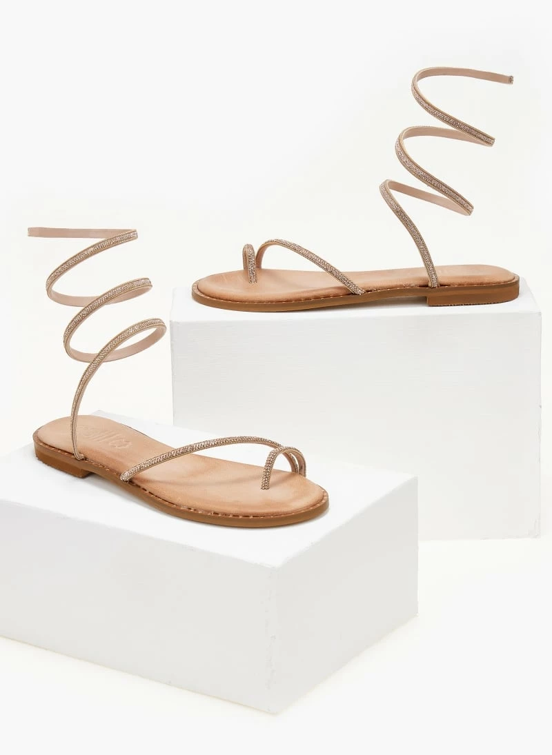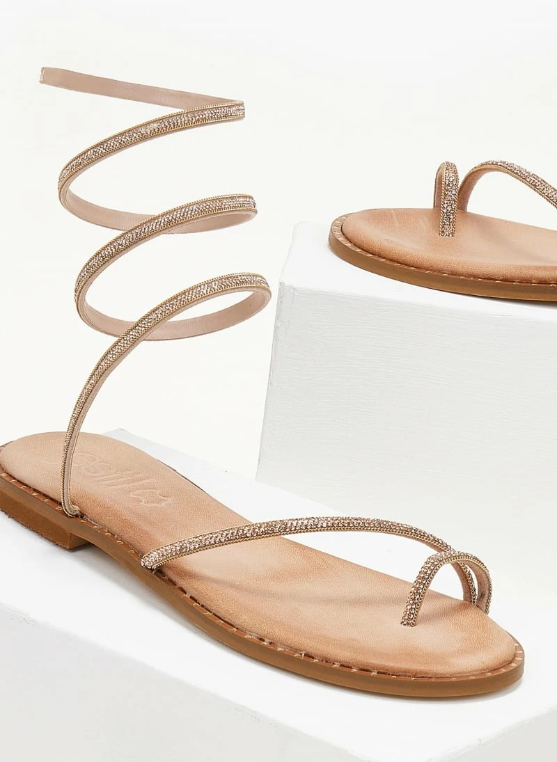 ΧΟΝΔΡΙΚΟ ΕΜΠΟΡΙΟ 👏 Φτηνός 🧨 Σανδάλια δερμάτινα ESTIL με Strass έλασμα – Χαλκός 🎉 🛒