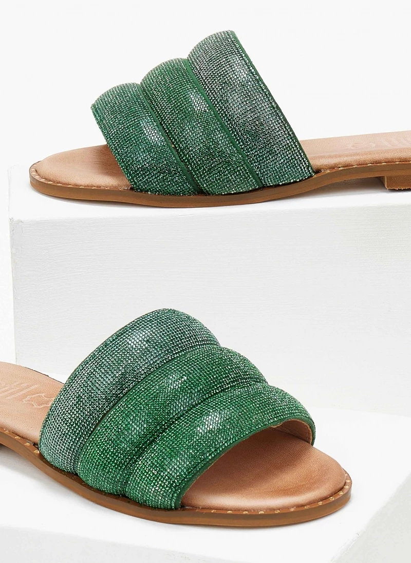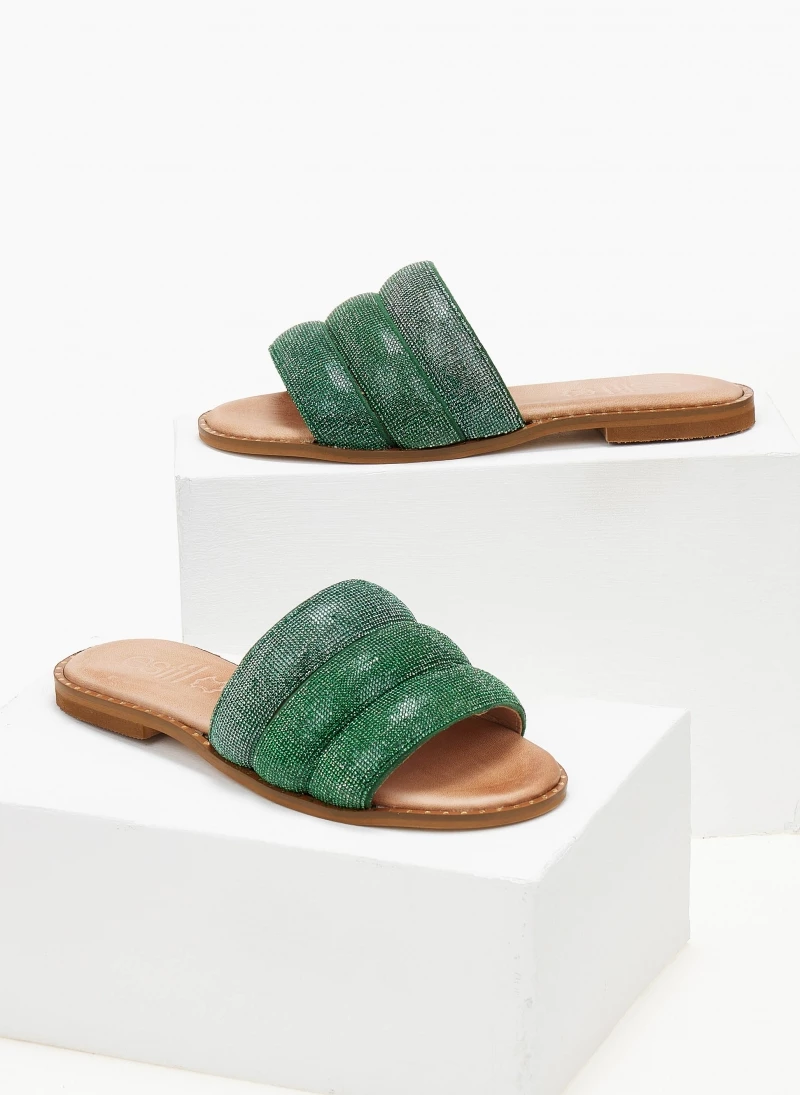 ΧΟΝΔΡΙΚΟ ΕΜΠΟΡΙΟ 🥰 Το φθηνότερο 🎉 Σανδάλια δερμάτινα ESTIL με Strass φάσα – Πράσινο 🌟 🔥