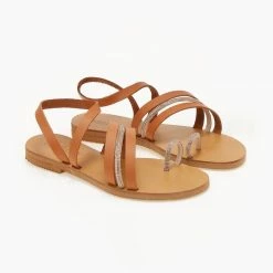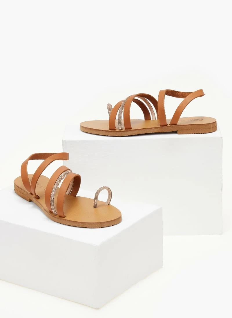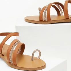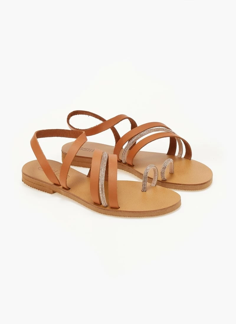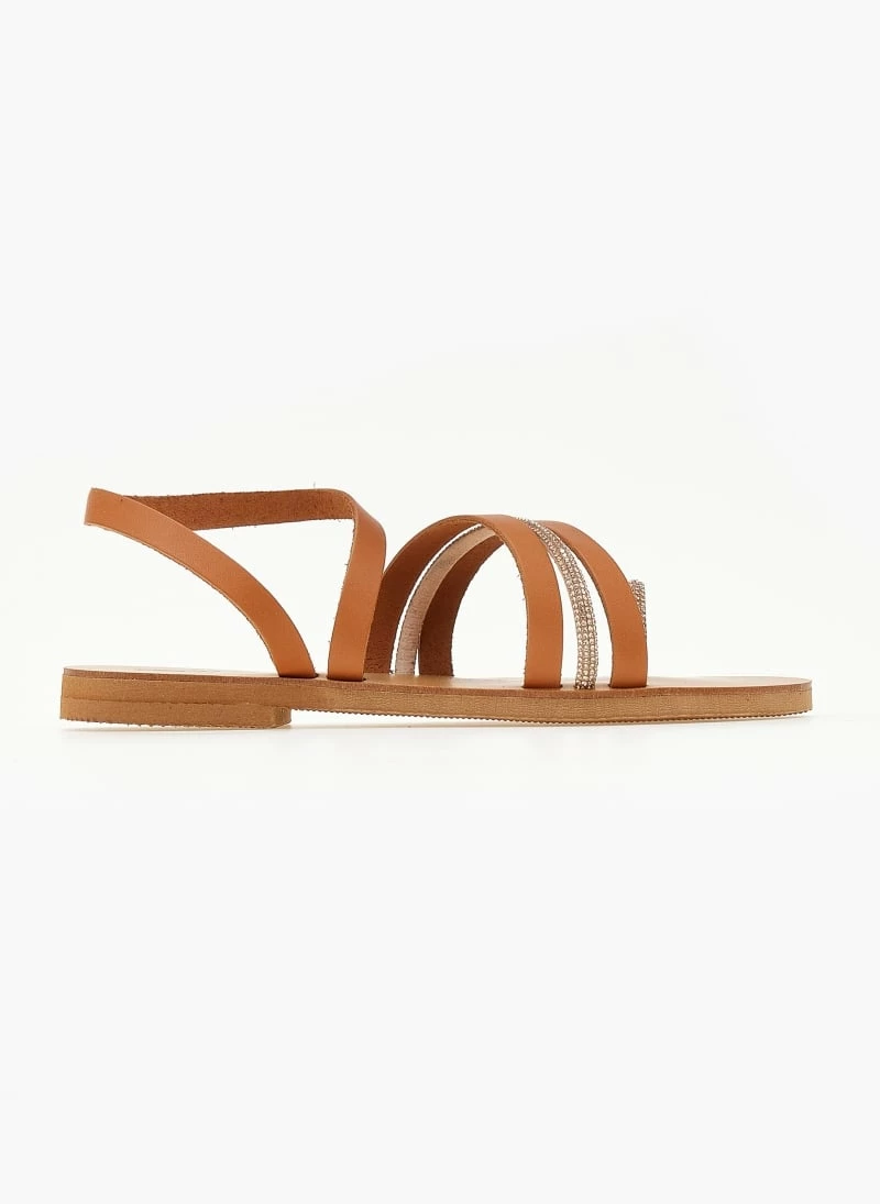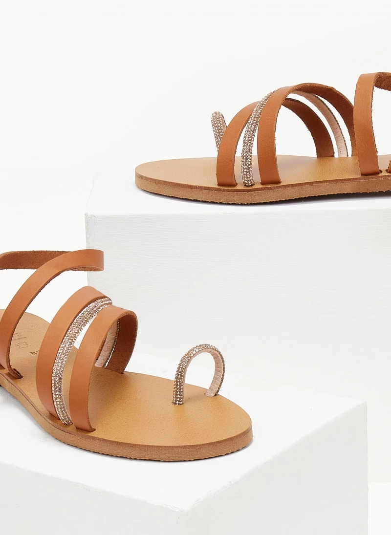 Φτηνός 👏 Flash Sale ❤️ Σανδάλια δερμάτινα ESTIL με Strass λεπτομέρεια – Ταμπά 🎁 🧨