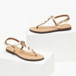 Best Pirce ✔️ Προϋπολογισμός 👍 Πέδιλα TFP Flat δερμάτινα με χιαστί δέσιμο – Χαλκός 👏 ⭐