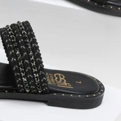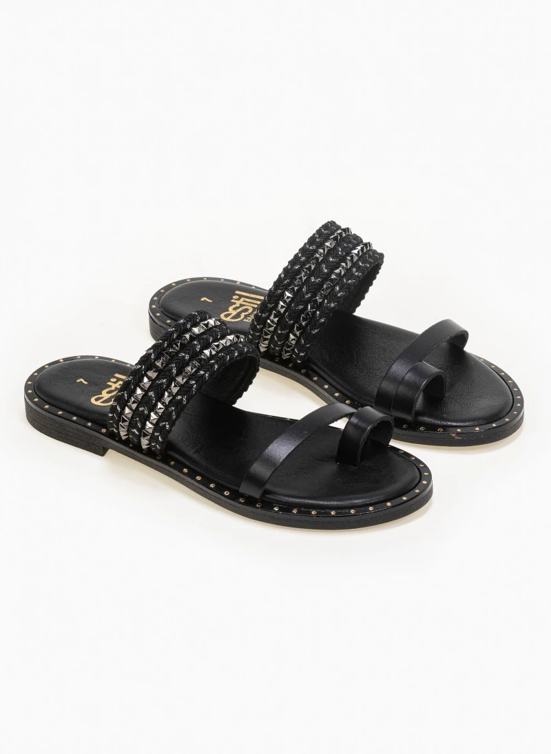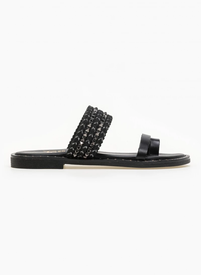 Κουπόνι 🛒 Συμφωνίες ✔️ The Fashion Project Πέδιλα Estil φλατ δερμάτινα με κοτσιδάκι – Μαύρο 😀 ✔️