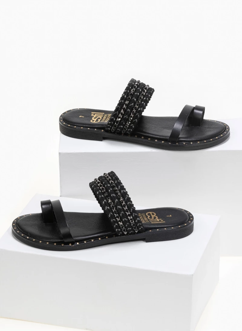 Νέος 🤩 Το φθηνότερο 😍 Σανδάλια Estil δερμάτινα με φάσα και Pattern ψάθα – Μαύρο 😉 😍
