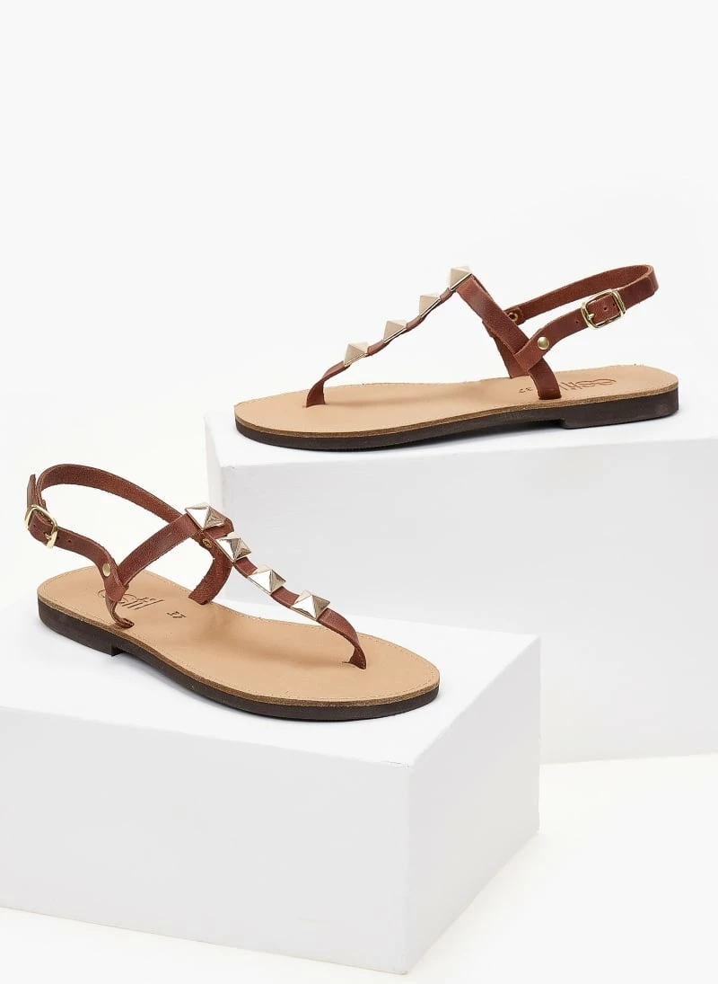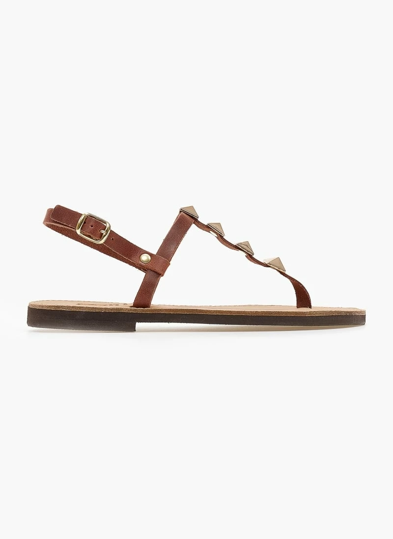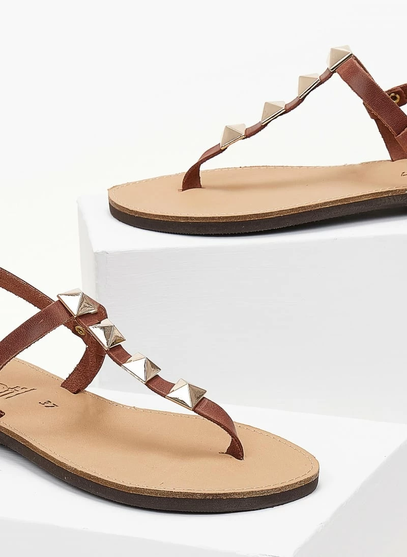 Σανδάλια δερμάτινα Estil με μεταλλικά τρουκς. Αναγεννημένο δέρμα πάτος. Χειροποίητα, ελληνικής κατασκευής.