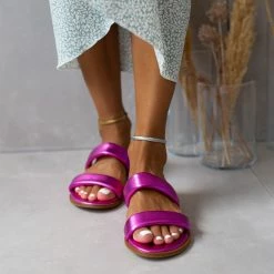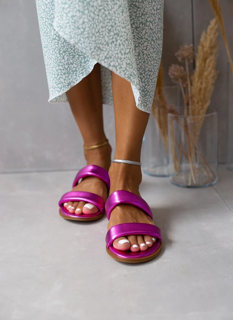 Best Pirce ✨ Η καλύτερη συμφωνία ✨ Σανδάλια δερμάτινα ESTIL μεταλλιζέ – Φούξια 🧨 😀