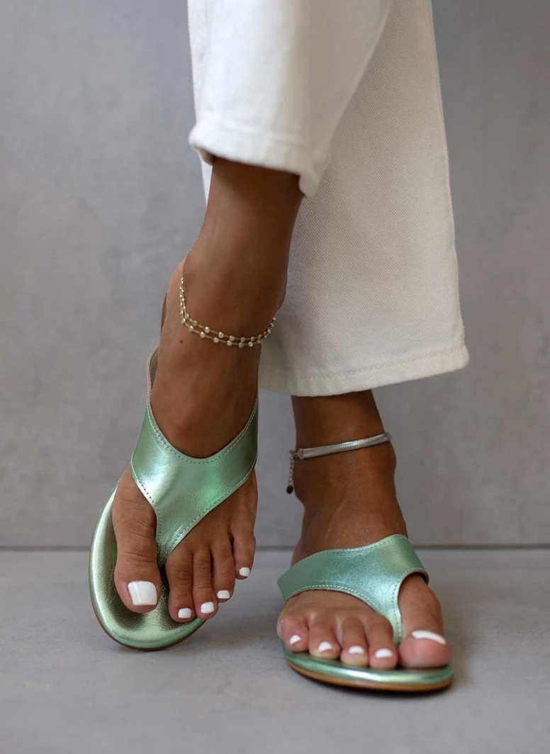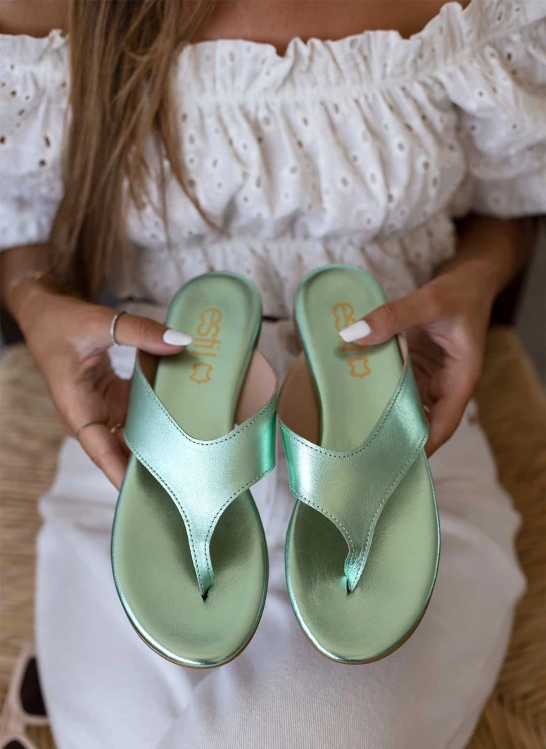 Σανδάλια δερμάτινα ESTIL από μεταλλιζέ δέρμα. Δερμάτινος πάτος με ενίσχυση. Ελληνικής κατασκευής.