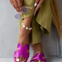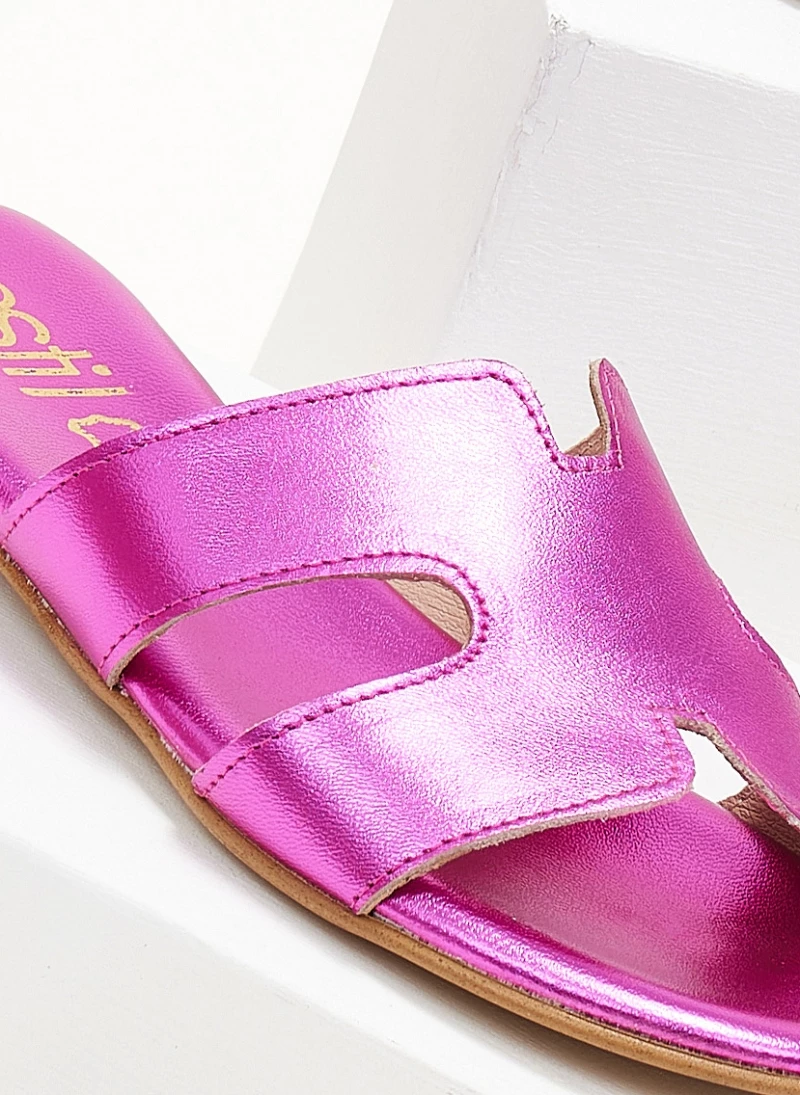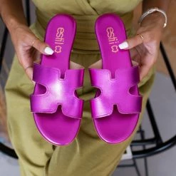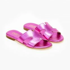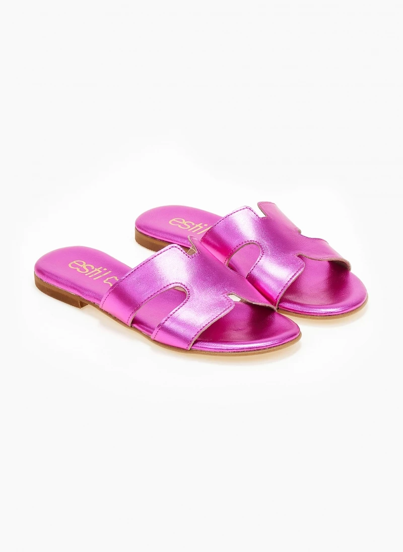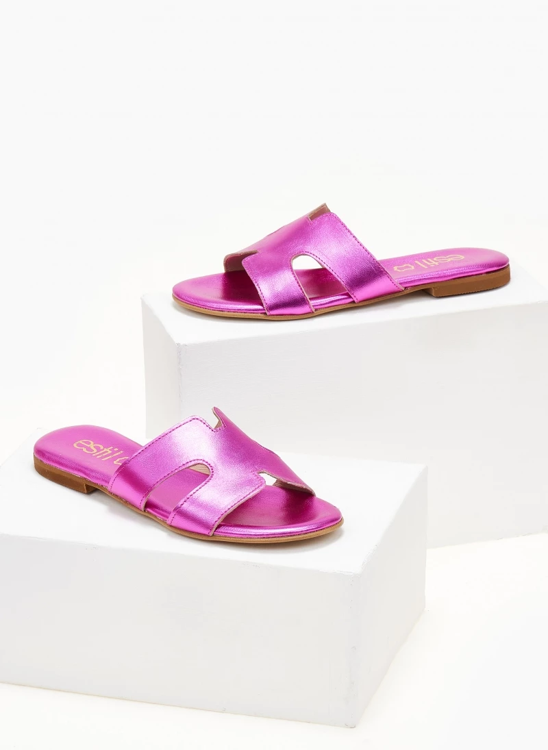 Εκπτωση ❤️ Το φθηνότερο 😀 Σανδάλια δερμάτινα ESTIL σε μεταλλικά χρώματα – Φούξια ✨ 🔔