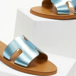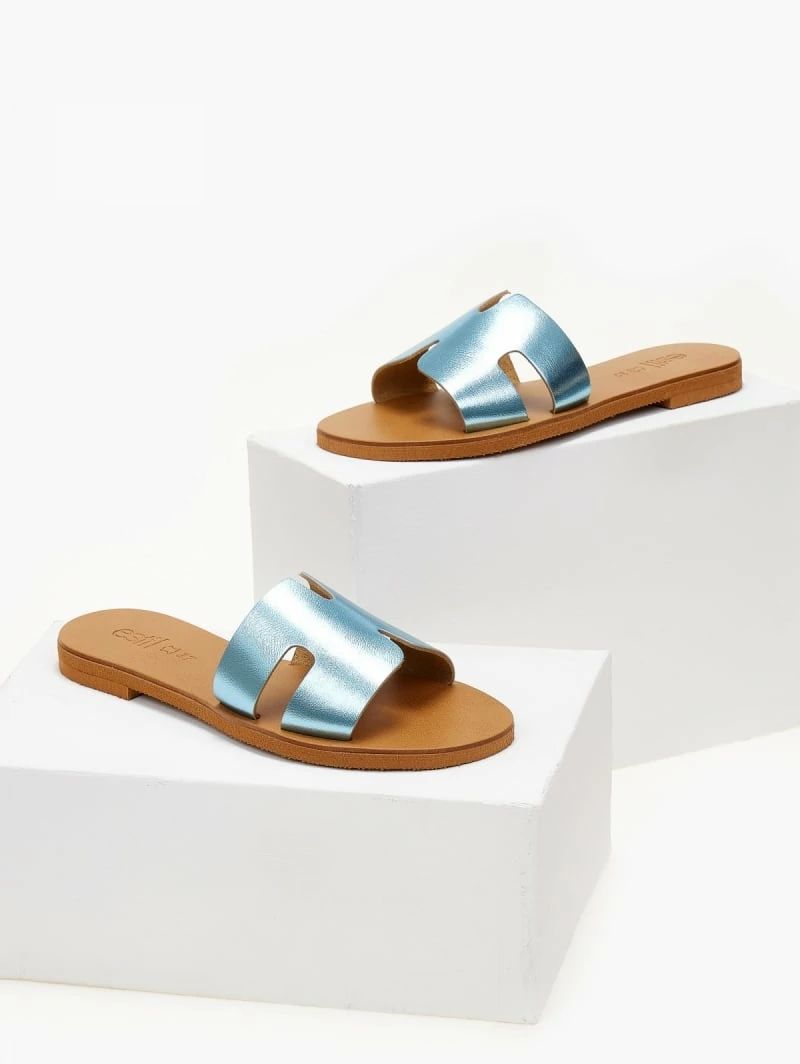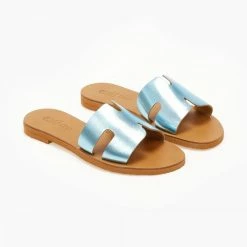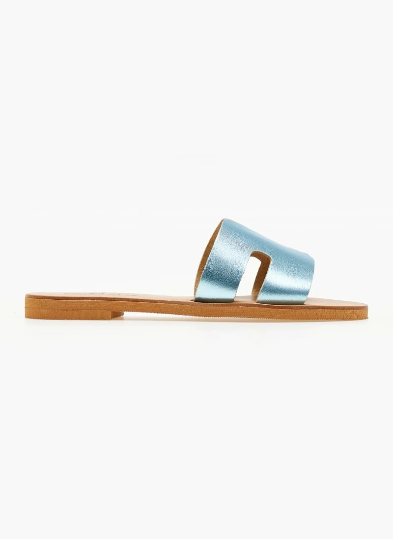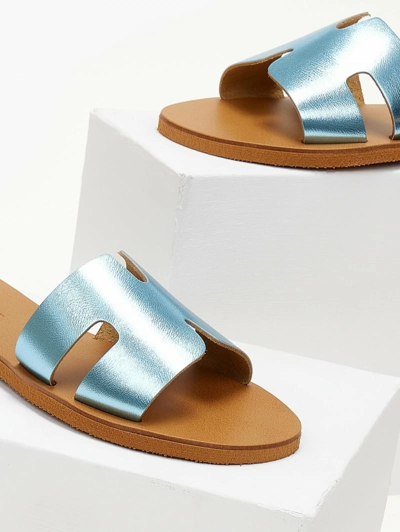 Συμφωνίες 🧨 Ολοκαίνουργιο ✔️ Σανδάλια δερμάτινα ESTIL σε μεταλλικά χρώματα – Γαλάζιο ✔️ 🤩
