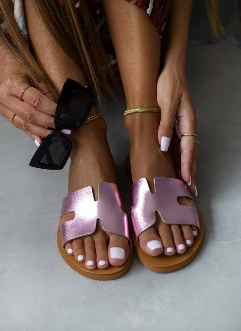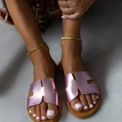 Το φθηνότερο ✨ Αγορά 🧨 Σανδάλια δερμάτινα ESTIL σε μεταλλικά χρώματα – Ροζ ⌛ 🔔