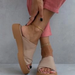 Flash Sale 😍 Το φθηνότερο ⌛ Σανδάλια Estil δερμάτινα με φάσα στο κουτεπιέ – Φυσικό 🔔 🧨