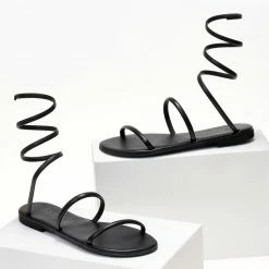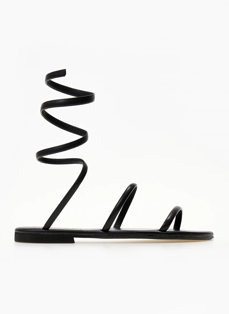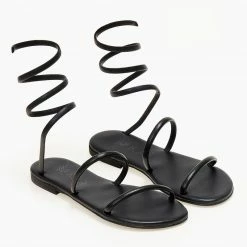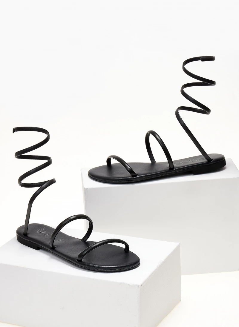 Τοπ 10 🛒 Εκπτωση 🎁 Σανδάλια δερμάτινα IRIS με ιδιαίτερο δέσιμο – Μαύρο 🎁 👍