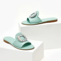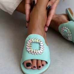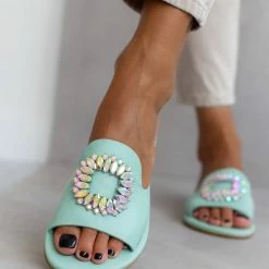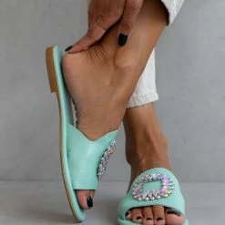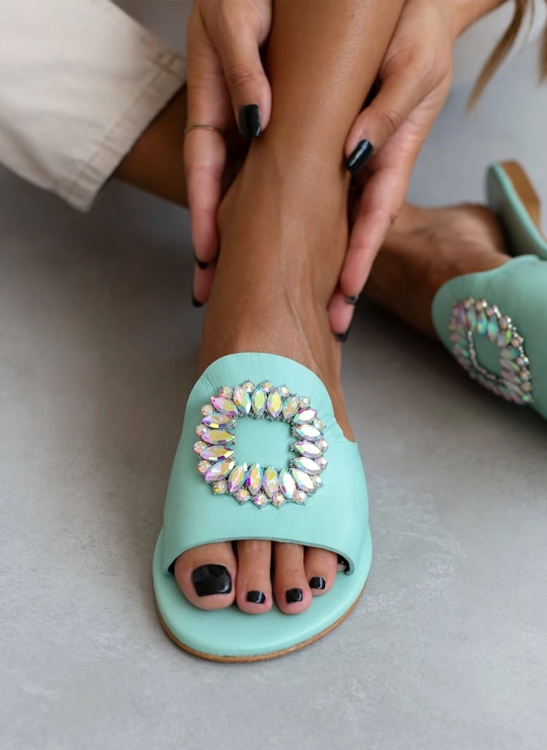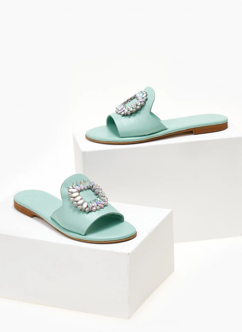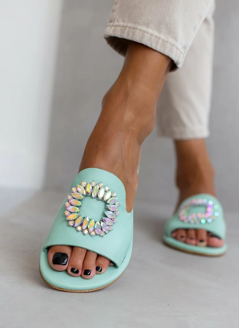Προώθηση ✨ Καλύτερη πώληση 🎉 Σανδάλια δερμάτινα IRIS με ιριδίζουσες πέτρες – Βεραμάν 😀 🔥