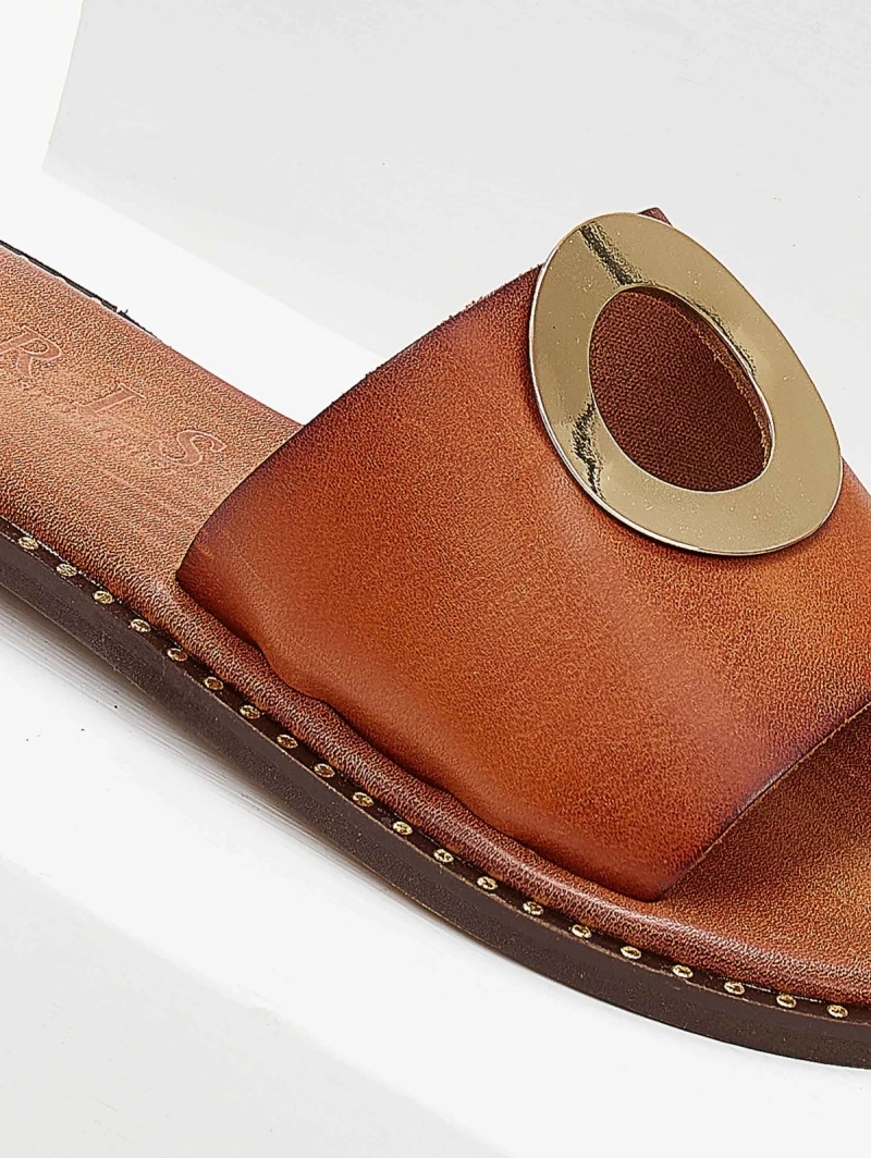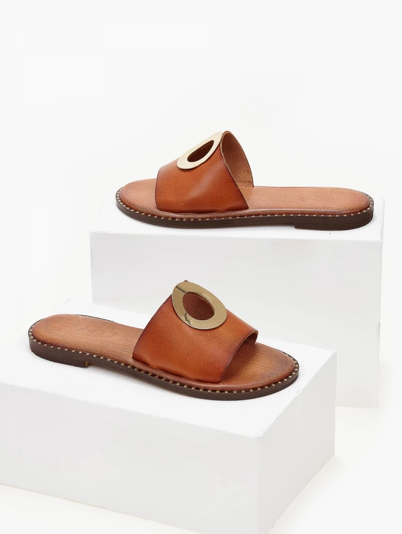 Φτηνός 😉 Καλύτερη πώληση 💯 Σανδάλια δερμάτινα IRIS με κύκλο – Ταμπά 👏 🤩