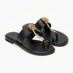 Η καλύτερη συμφωνία 👍 ΧΟΝΔΡΙΚΟ ΕΜΠΟΡΙΟ ⌛ Σανδάλια δερμάτινα IRIS με λουλούδι – Μαύρο 👏 🧨