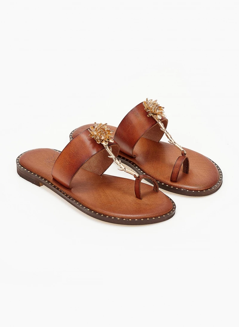 Εξοδος ⌛ Τοπ 10 ✔️ Σανδάλια δερμάτινα IRIS με λουλούδι – Ταμπά ❤️ 😉