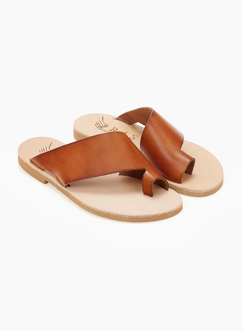 Αγορά ⌛ Νέος 🌟 Σανδάλια δερμάτινα IRIS με λοξή φάσα – Ταμπά ⌛ ✔️
