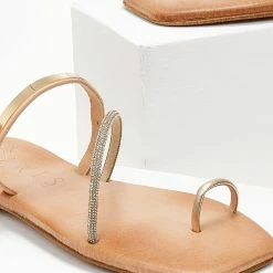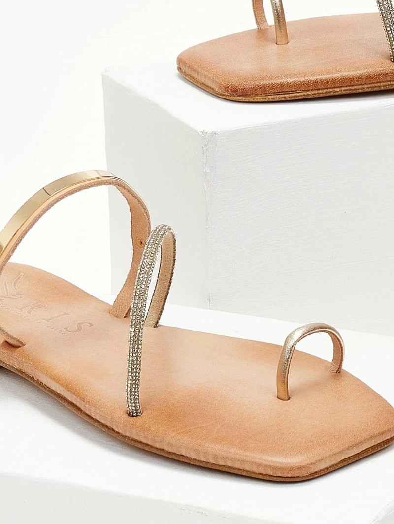 Ολοκαίνουργιο 😍 ΧΟΝΔΡΙΚΟ ΕΜΠΟΡΙΟ ✨ Σανδάλια δερμάτινα IRIS με μεταλλική λεπτομέρεια – Χρυσό ✔️ 😉