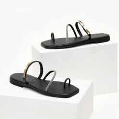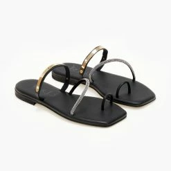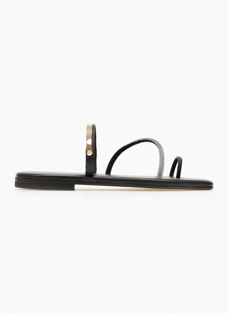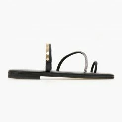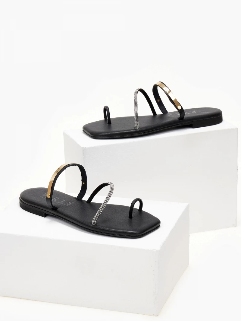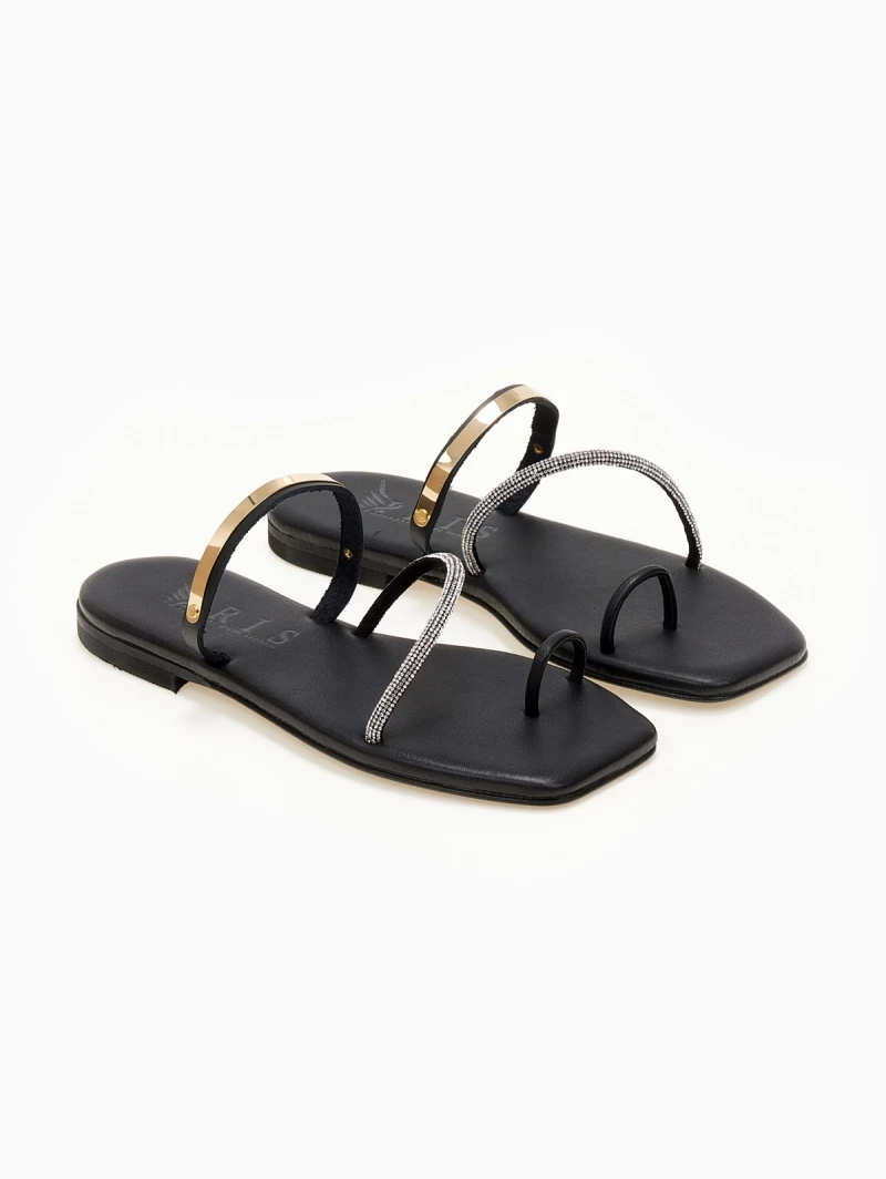Καλύτερη πώληση 🥰 Προώθηση 🤩 Σανδάλια δερμάτινα IRIS με μεταλλική λεπτομέρεια – Μαύρο 🤩 👍