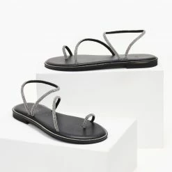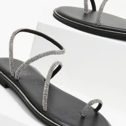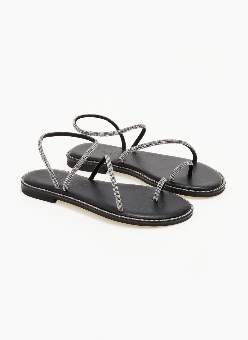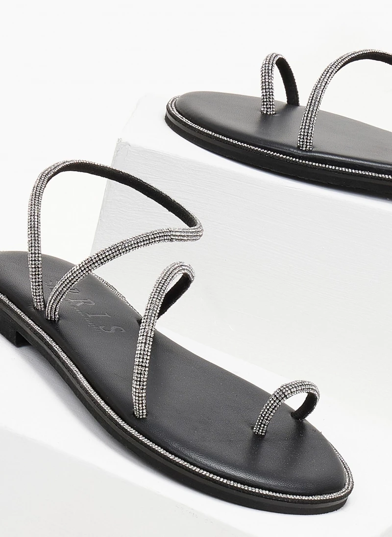 Εκπτωση ⌛ Flash Sale 🥰 Σανδάλια δερμάτινα IRIS με περαστό Strass λουράκι – Μαύρο 💯 ⭐
