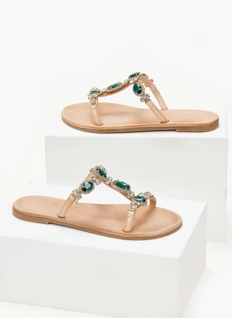 Συμφωνίες 😀 Εξοδος 🧨 Σανδάλια δερμάτινα IRIS με πέτρες – Φυσικό 😉 🔥