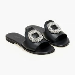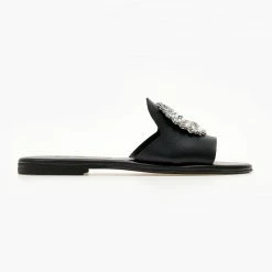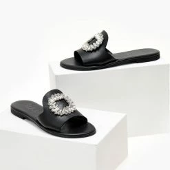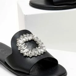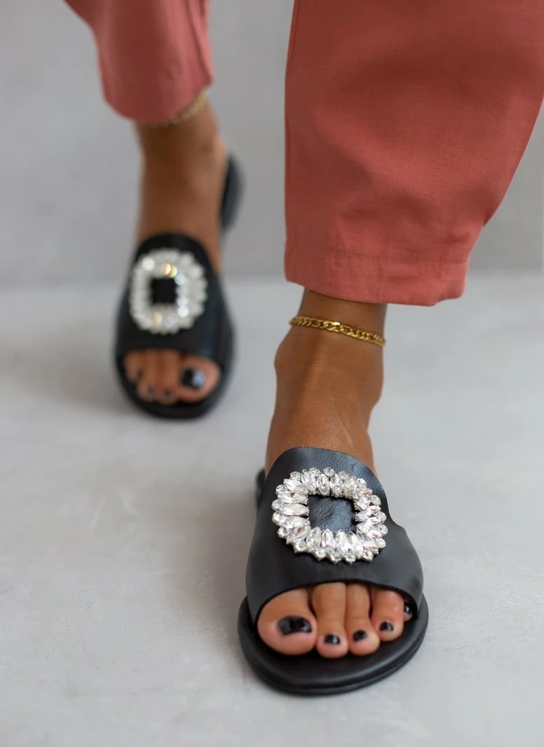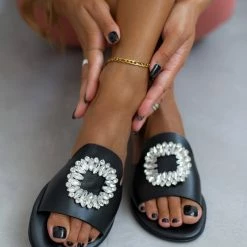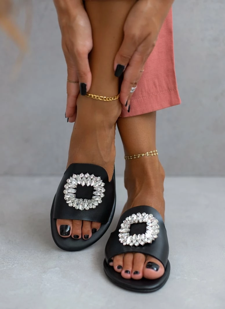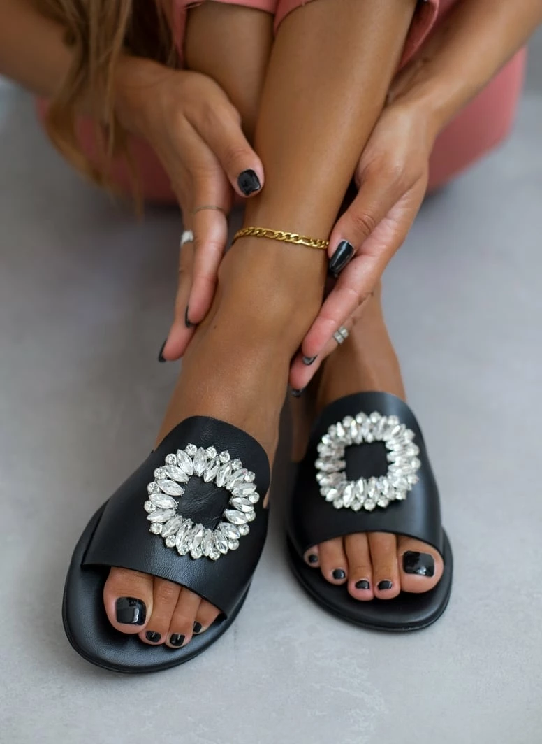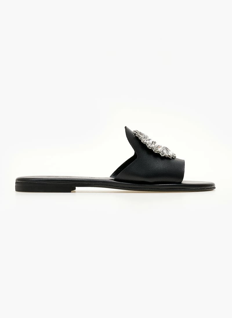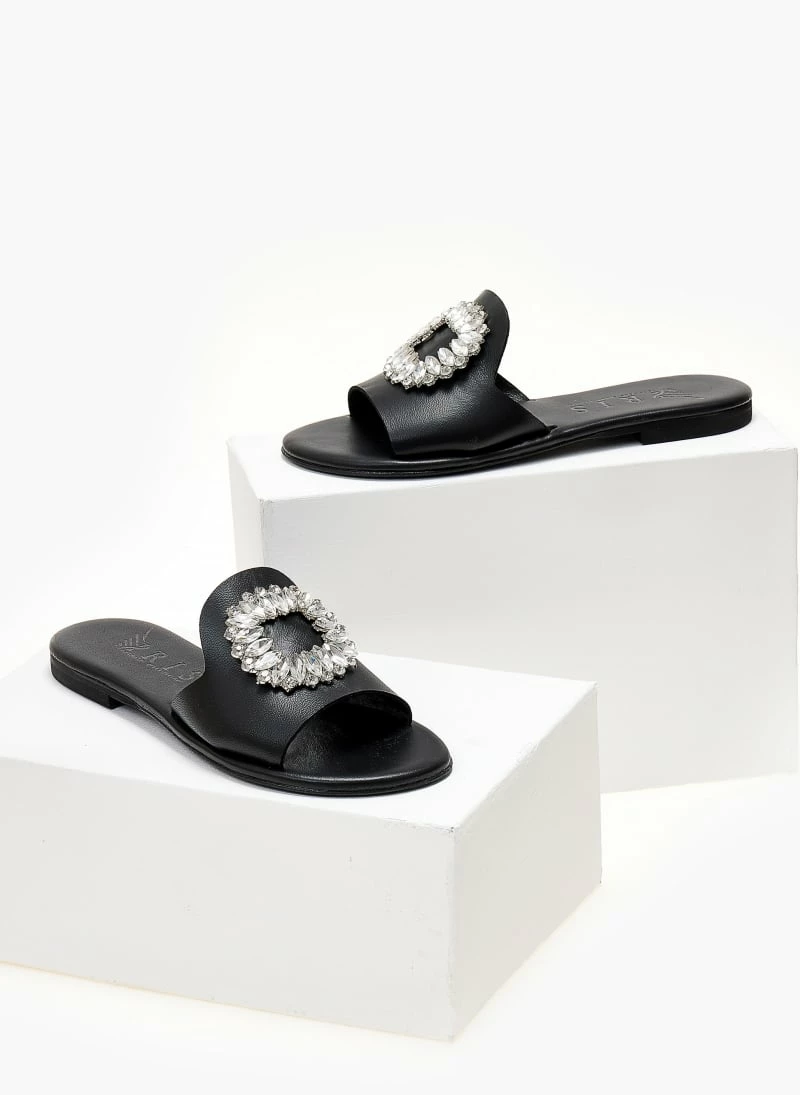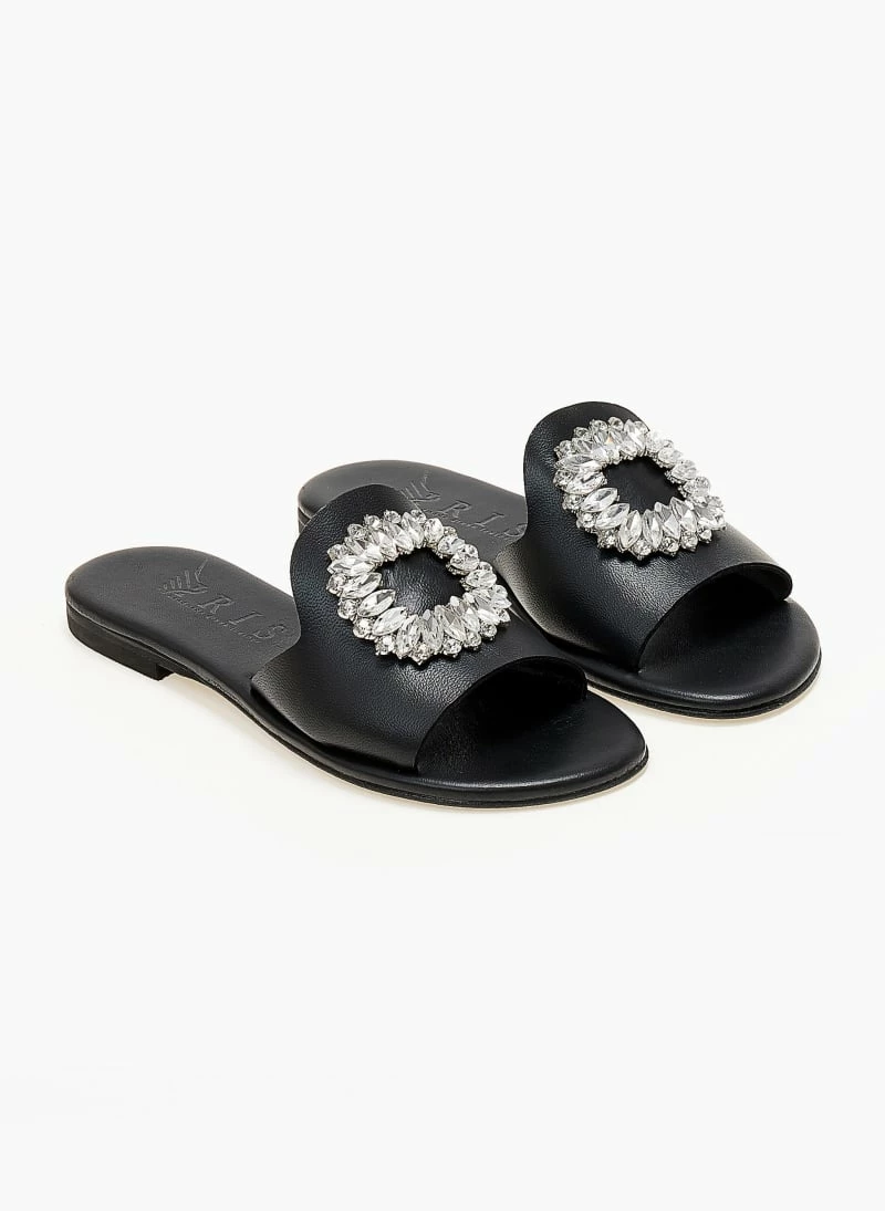 Φτηνός 😀 Συμφωνίες ⌛ Σανδάλια δερμάτινα IRIS με πέτρες – Μαύρο ⌛ 🔔