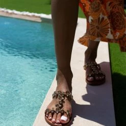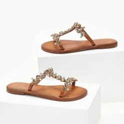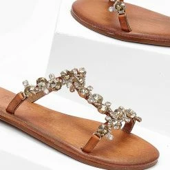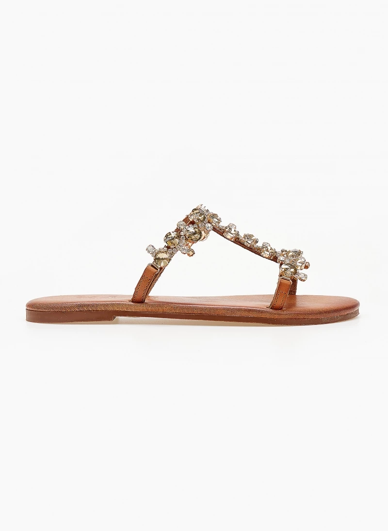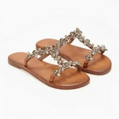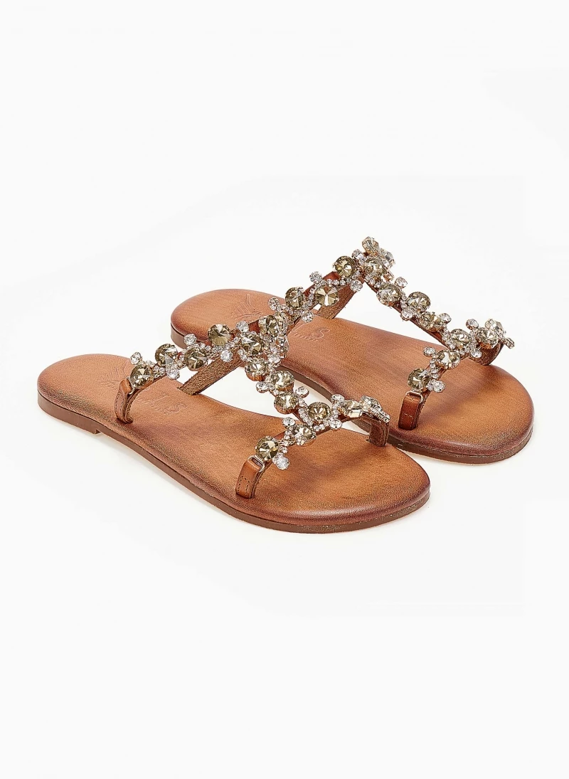 Best Pirce 🌟 Εξοδος 👍 Σανδάλια δερμάτινα IRIS με πέτρες – Ταμπά ✨ 🧨