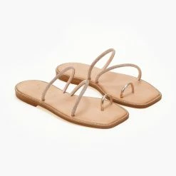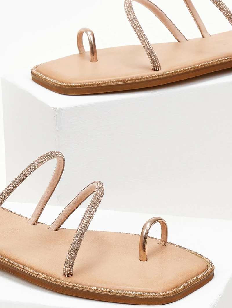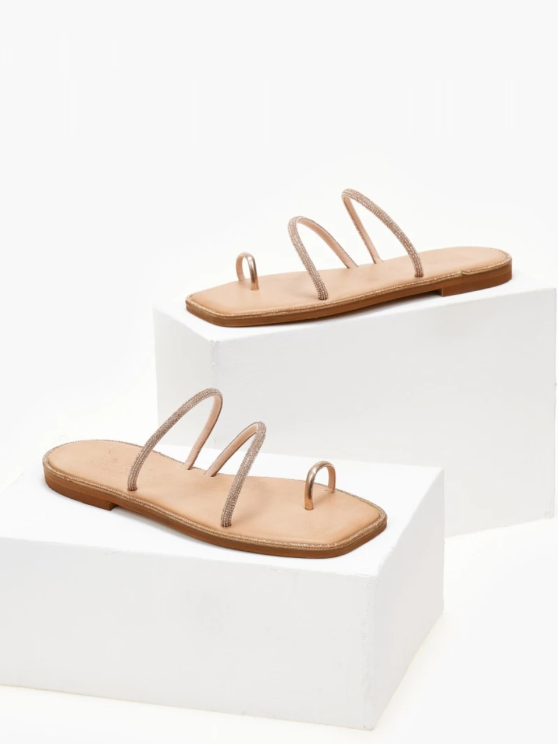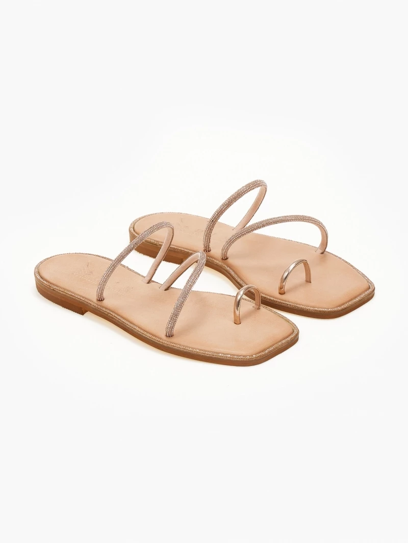 Σανδάλια δερμάτινα IRIS σε καρέ γραμμή με διακριτικά strass περιμετρικά της σόλας. Έχει λεπτά λουράκια με strass. Δερμάτινος πάτος με ενίσχυση. Χειροποίητα,ελληνικής κατασκευής.