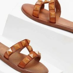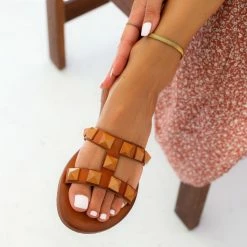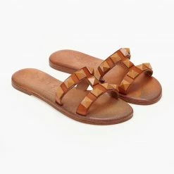 Το φθηνότερο 👍 Το φθηνότερο 🎉 Σανδάλια Estil δερμάτινα με φάσα και λουράκι – Κάμελ ⌛ 👍