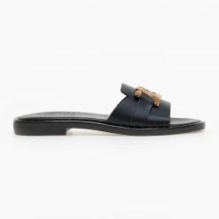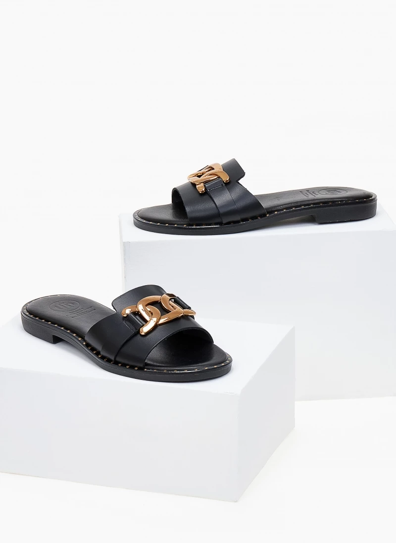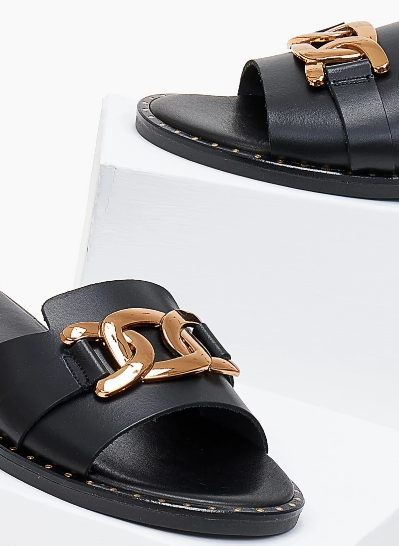 Flash Sale 🤩 Ολοκαίνουργιο 🔔 Σανδάλια δερμάτινα TFP με αλυσίδα στη φάσα – Μαύρο 🎉 ⌛