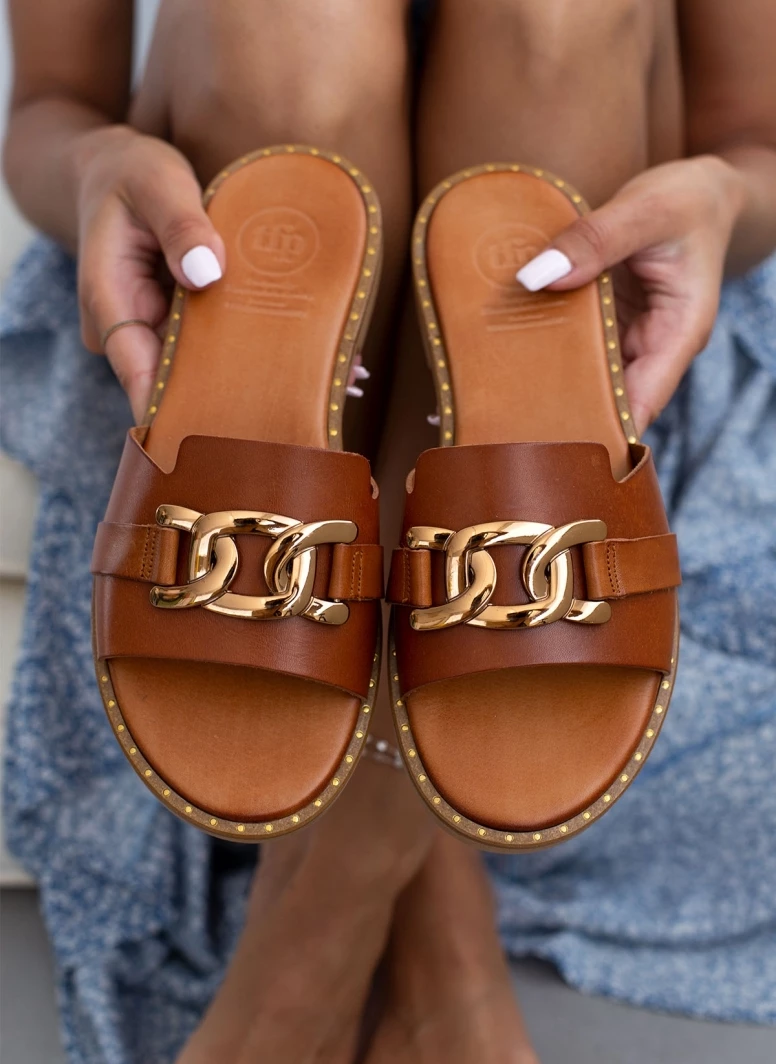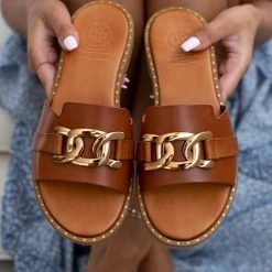 Αγορά ✨ Εκπτωση 😍 Σανδάλια δερμάτινα TFP με αλυσίδα στη φάσα – Ταμπά 😀 ⭐