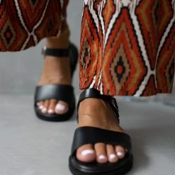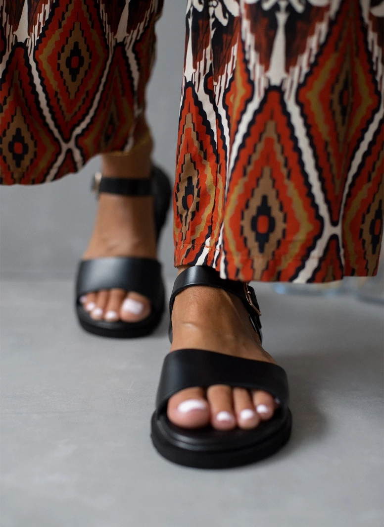 Το φθηνότερο 😍 Εκπτωση 💯 Σανδάλια Estil δερμάτινα με Pattern στη φάσα – Μαύρο ❤️ 🔔