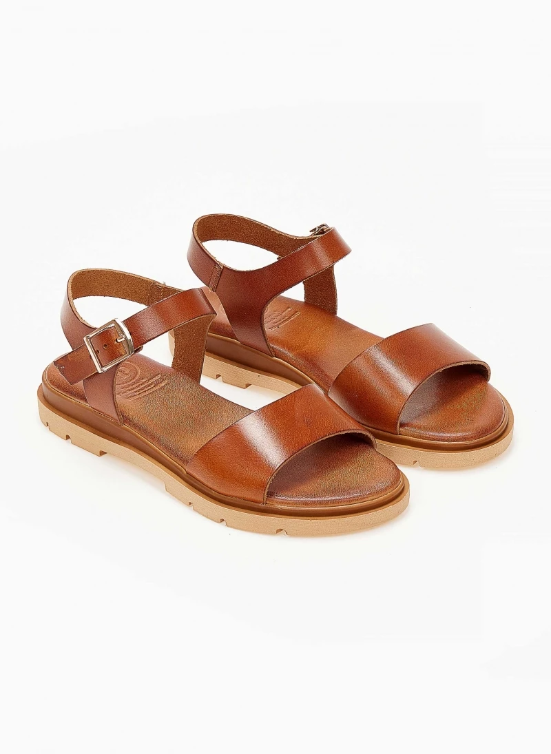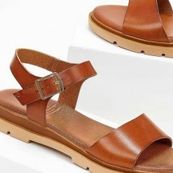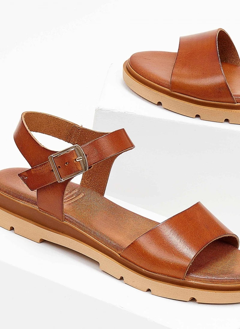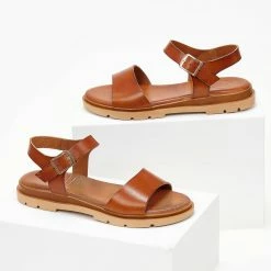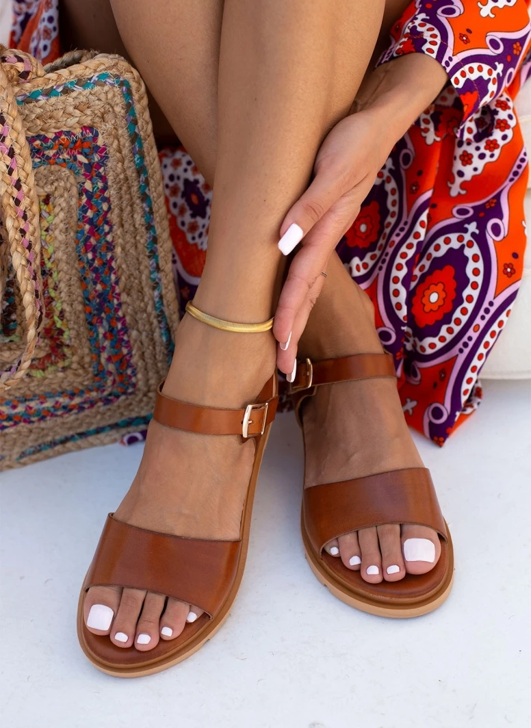 Το φθηνότερο 👍 Το φθηνότερο 🎉 Σανδάλια Estil δερμάτινα με φάσα και λουράκι – Κάμελ ⌛ 👍