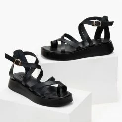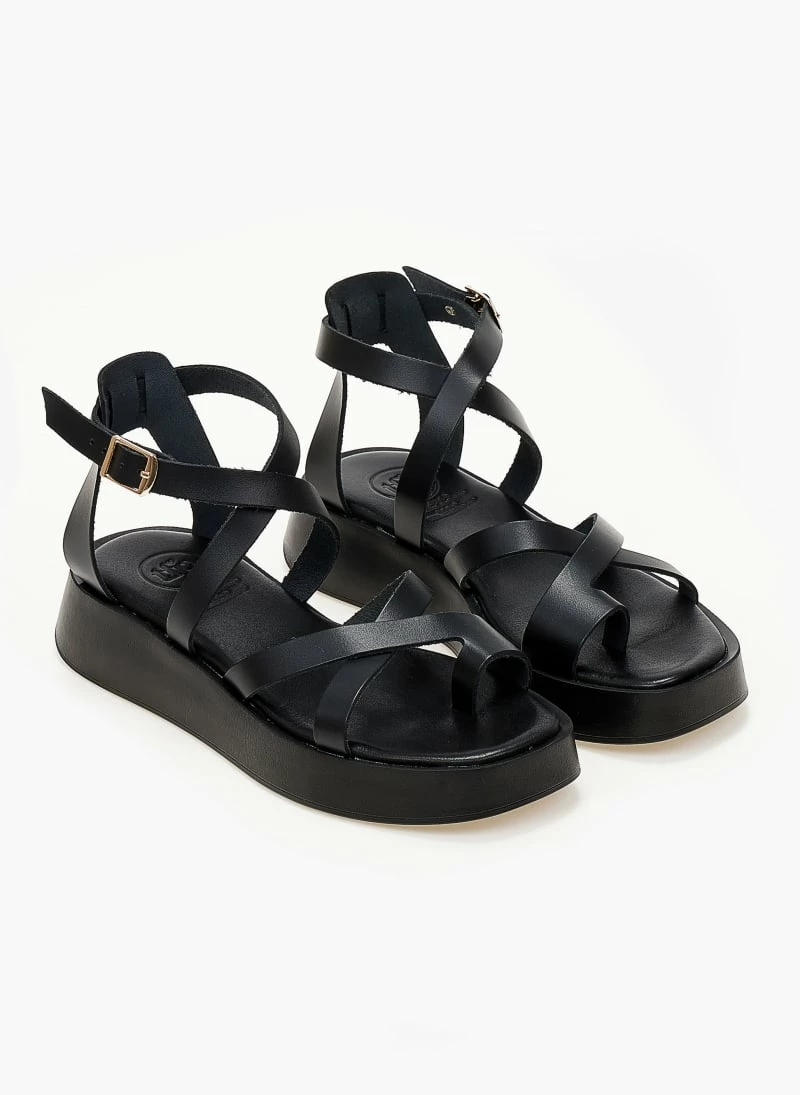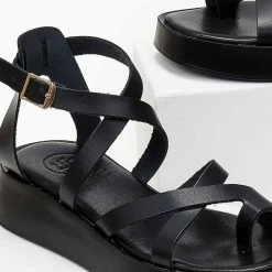 Προϋπολογισμός 🔥 ΧΟΝΔΡΙΚΟ ΕΜΠΟΡΙΟ ✔️ Σανδάλια TFP δερμάτινα με δέσιμο στον αστράγαλο – Μαύρο 👍 💯