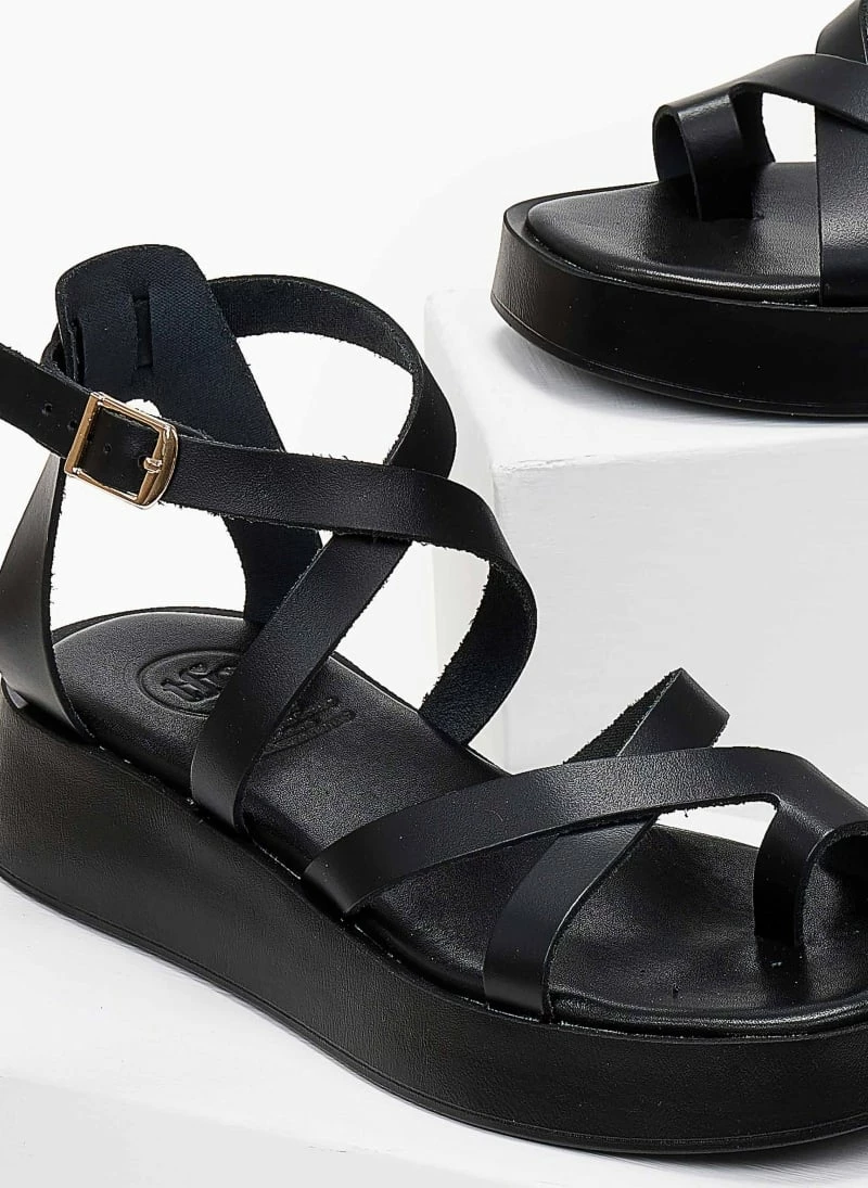 ΧΟΝΔΡΙΚΟ ΕΜΠΟΡΙΟ 🔥 Προϋπολογισμός ⭐ Σανδάλια δερμάτινα TFP με χιαστί δέσιμο – Μαύρο 🎁 💯
