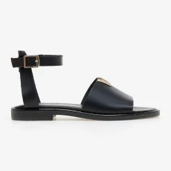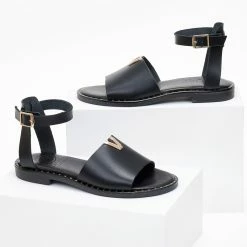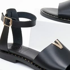 Ολοκαίνουργιο ⭐ Flash Sale ⌛ Σανδάλια δερμάτινα TFP με χρυσή λεπτομέρεια – Μαύρο 👏 🔔