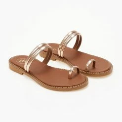 Best Pirce ✔️ Προϋπολογισμός 👍 Πέδιλα TFP Flat δερμάτινα με χιαστί δέσιμο – Χαλκός 👏 ⭐