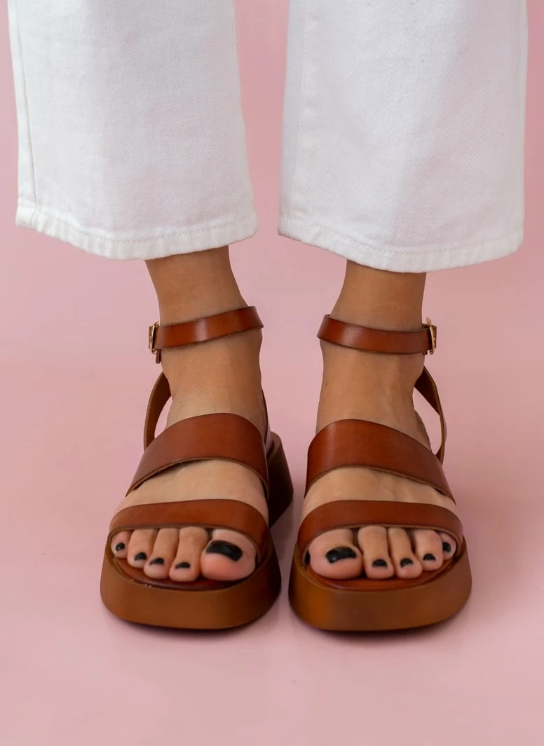 Συμφωνίες ⭐ Καλύτερη πώληση 🎁 Σανδάλια Estil δερμάτινα με περαστή φάσα – Ταμπά ❤️ ✔️